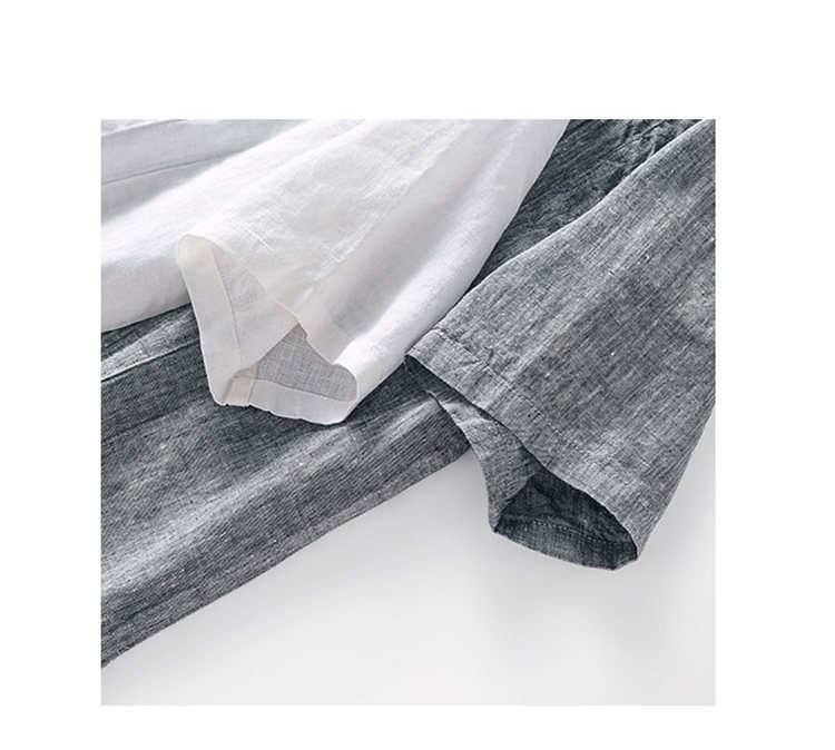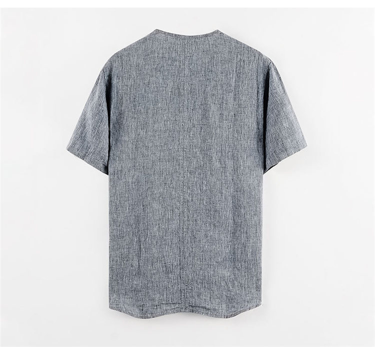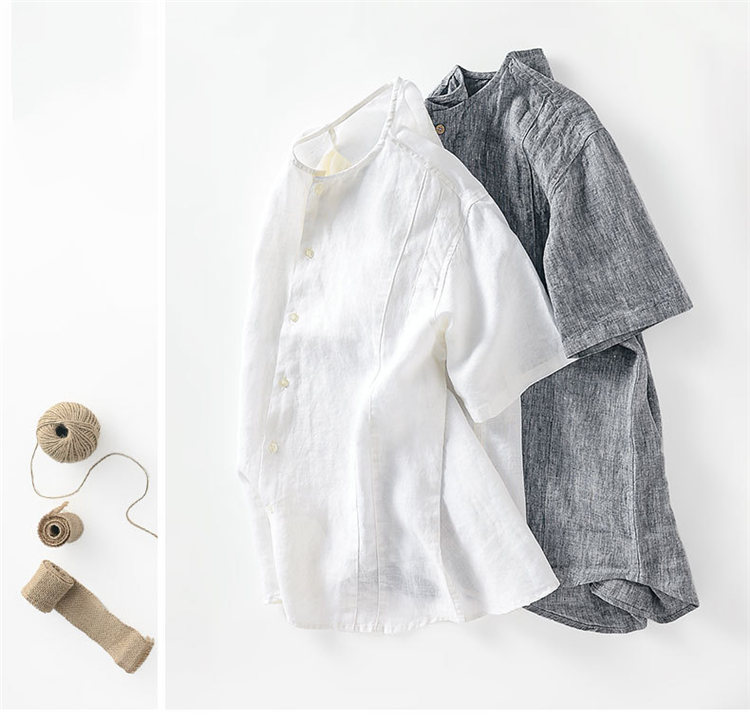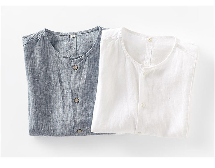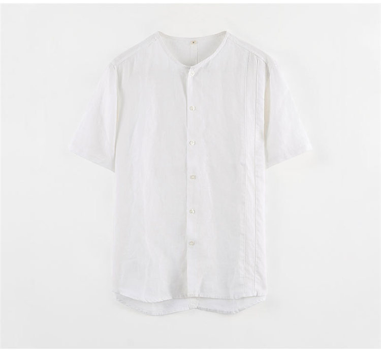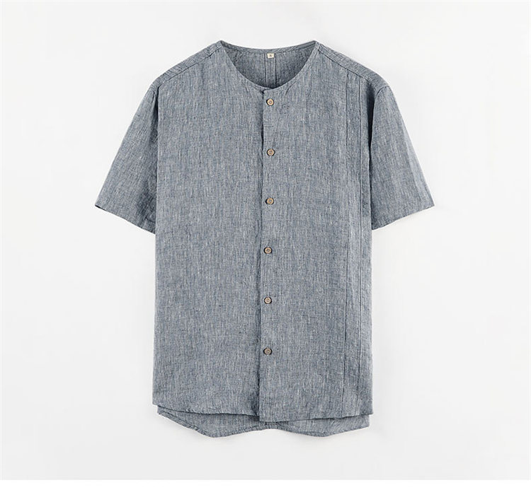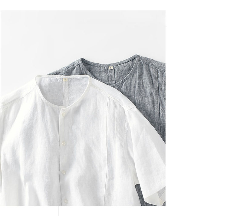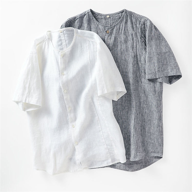 シャツ 半袖 メンズ トップス ノーカラー クルーネック リネン 前開き ボダン付きメンズファッション トップス カジュアルシャツ