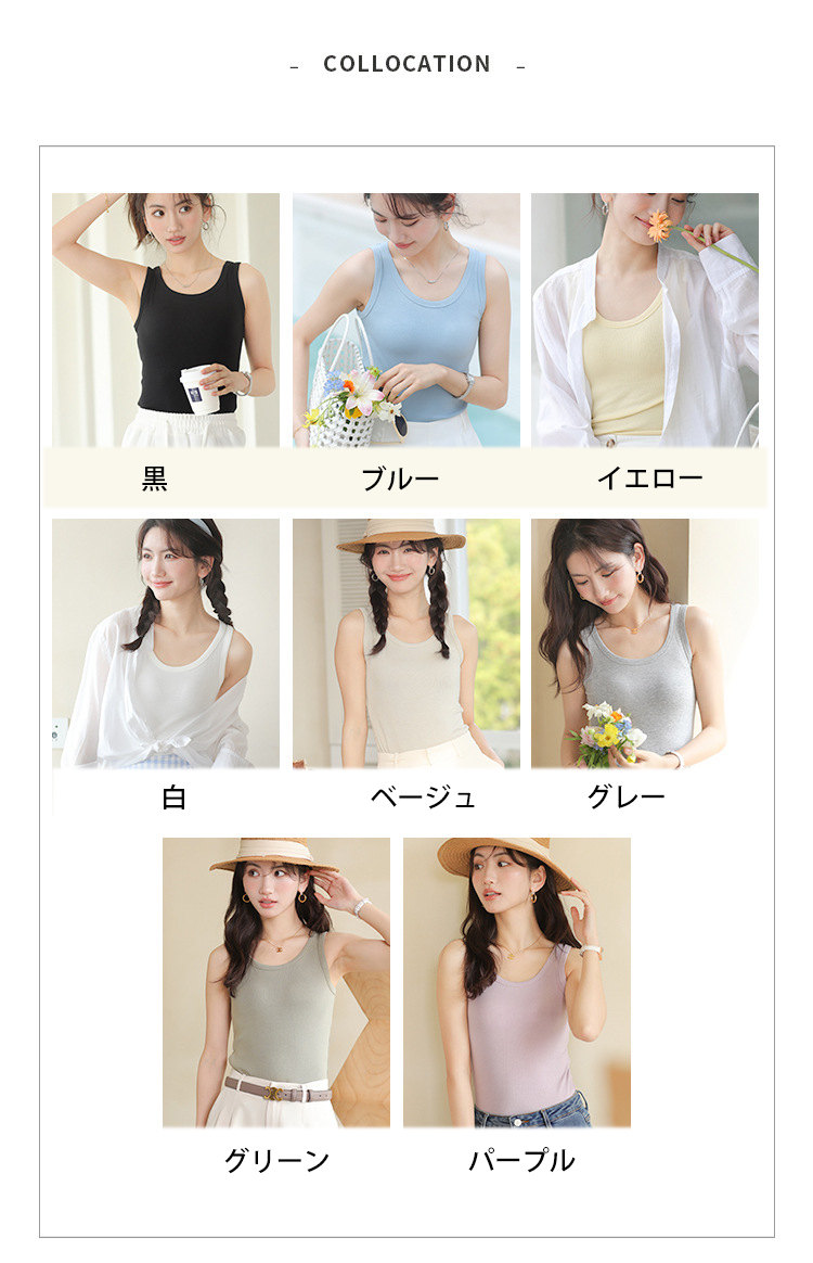 タンクトップ レディース インナー 下着 無地 ストレス トップス インナータンクトップ カジュアル おしゃれ シンプル Uネック ノーカラー おしゃれ きれいめ 女子 女性 レディースファッション キャミソール 春 春服 夏 夏服 薄手 肌着 M L