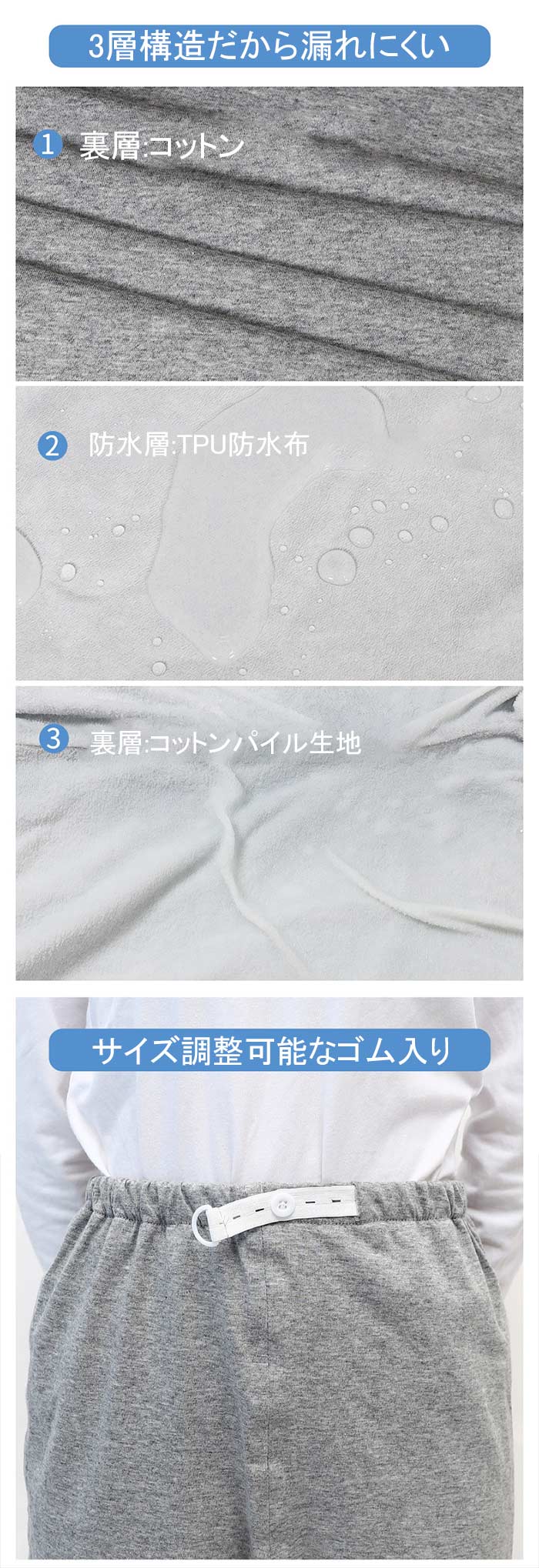 【漏れにくい3層構造】洗い替えできる介護 おねしょ ズボン ケット 防水 シーツ 大人 尿漏れ防止 おむつ おねしょシーツ ウエストゴム