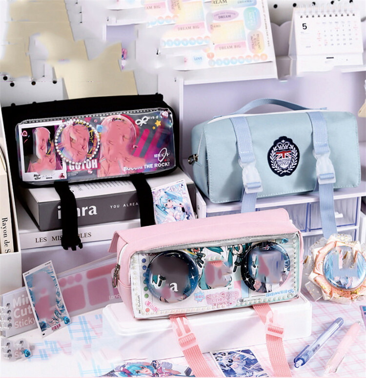 推し筆箱 ペンケース 大容量 多機能 筆箱 子供 小学生 中学生 高校生 大学生 学生 社会人 大人 缶バッチおしゃれ