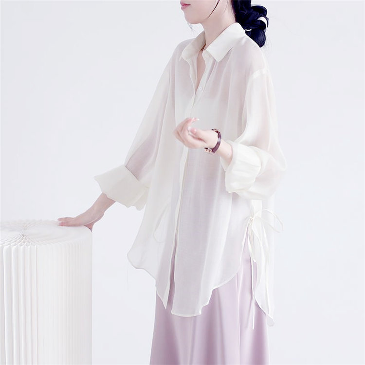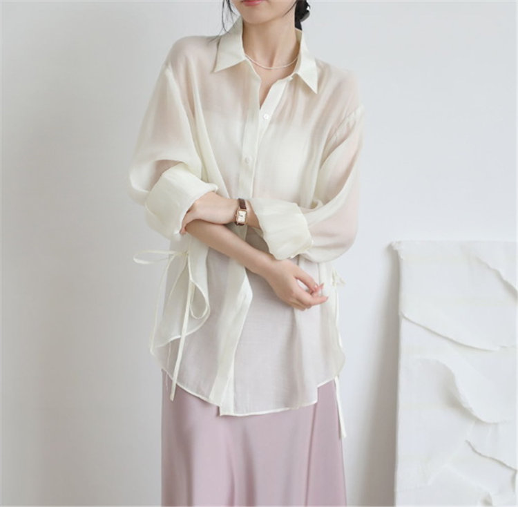 シアースリーブ ドッキングシャツ ボウタイシャツブラウス