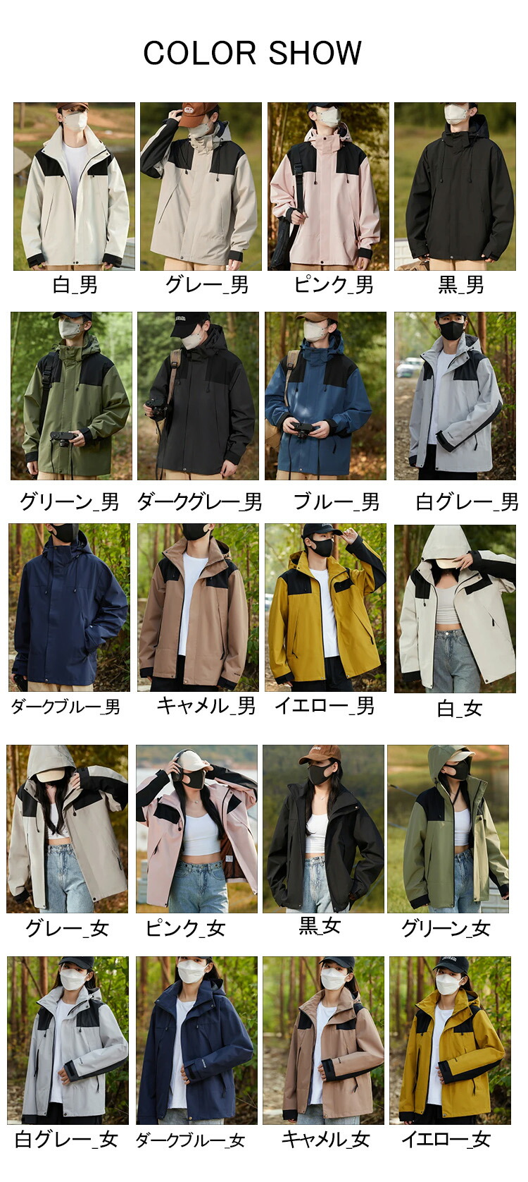 カラー: 白_女 グレー_女 ピンク_女 黒_女 グリーン_女 白グレー_女 ダークブルー_女 キャメル_女 イエロー_女 白_男 グレー_男 ピンク_男 黒_男 グリーン_男 ダークグレー男 ブルー男 白グレー_男 ダークブルー_男 キャメル_男 イエロー_男