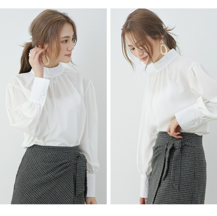 シフォンブラウス シアーブラウス ボリューム袖