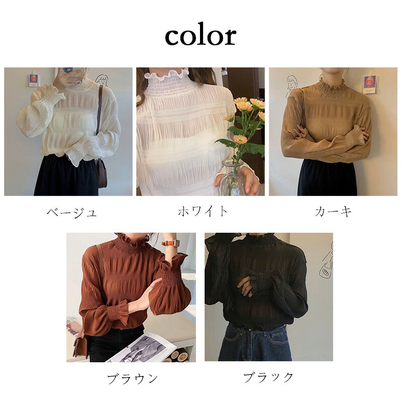 ハイネック シースルー トップス Tシ