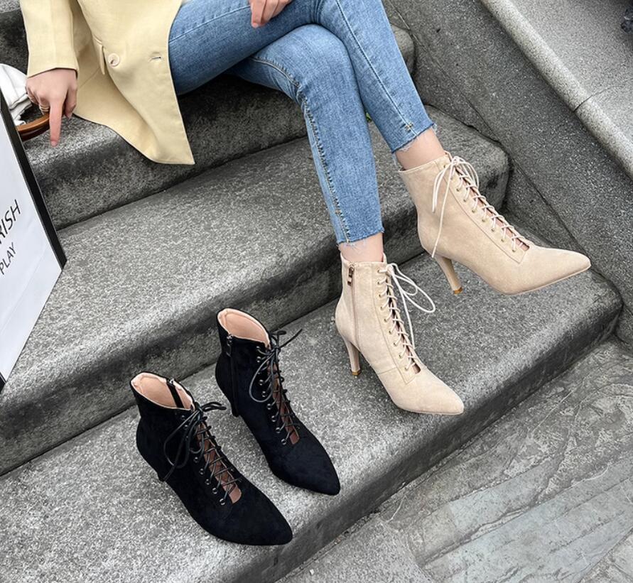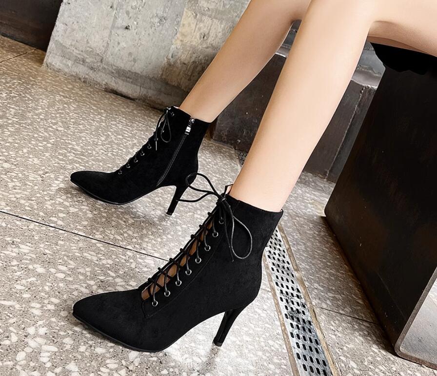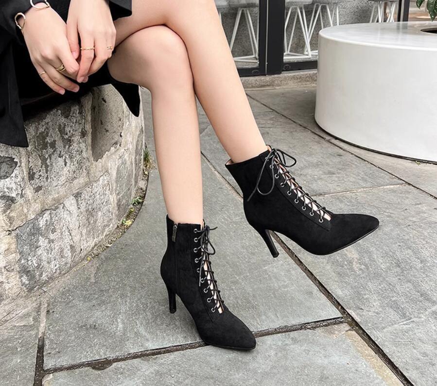 ショートブーツハイヒール編み上げブーツ