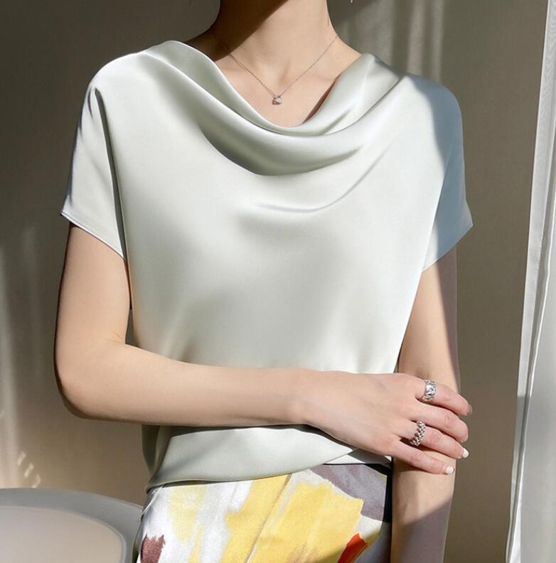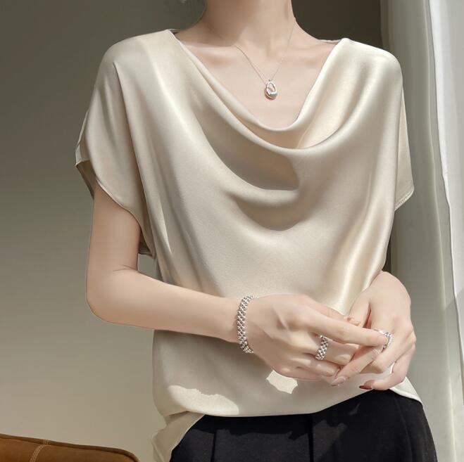 シャツ シルク風 ブラウス 半袖 レデ