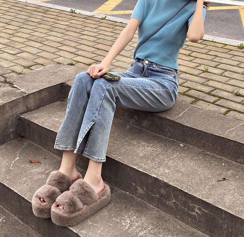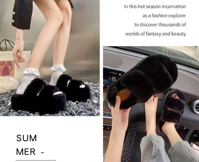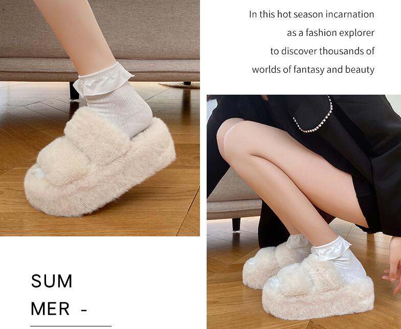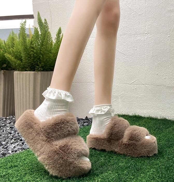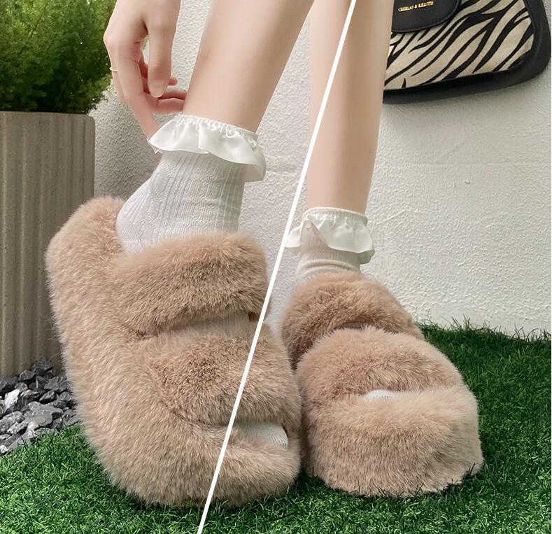 ファーサンダル厚底 美脚 サンダルミュ