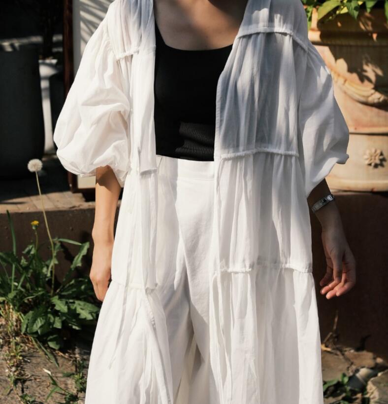 シアースリーブ ドッキングシャツ ボウタイシャツブラウス