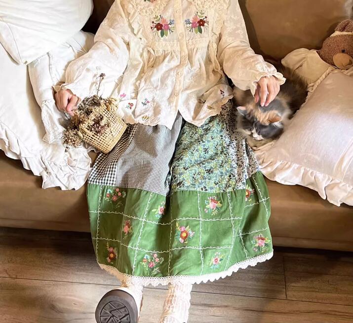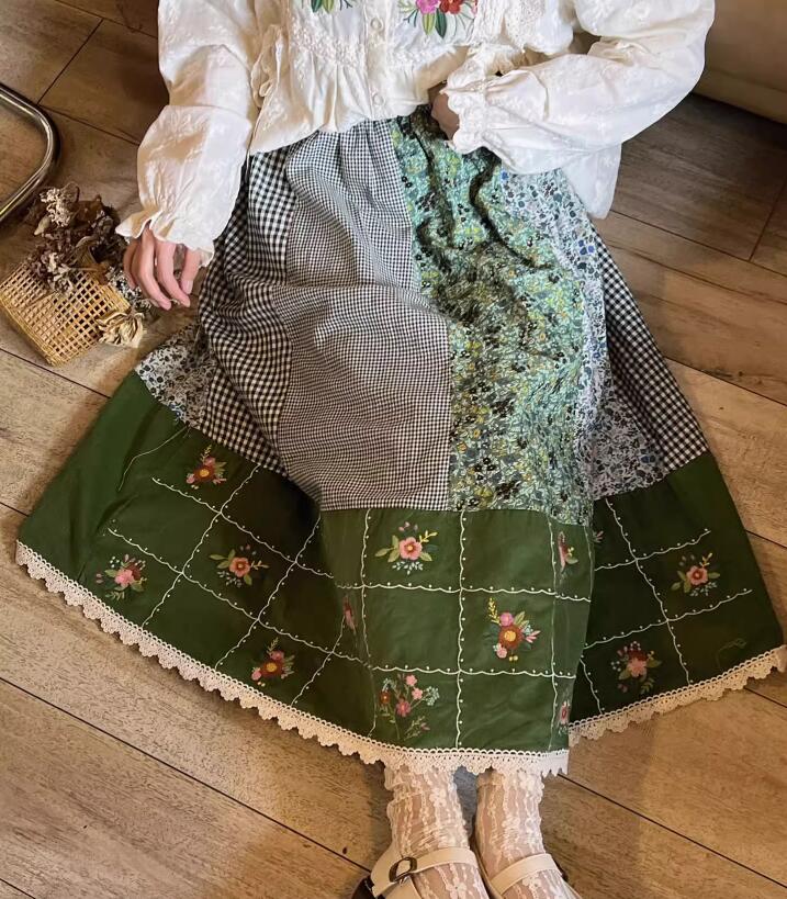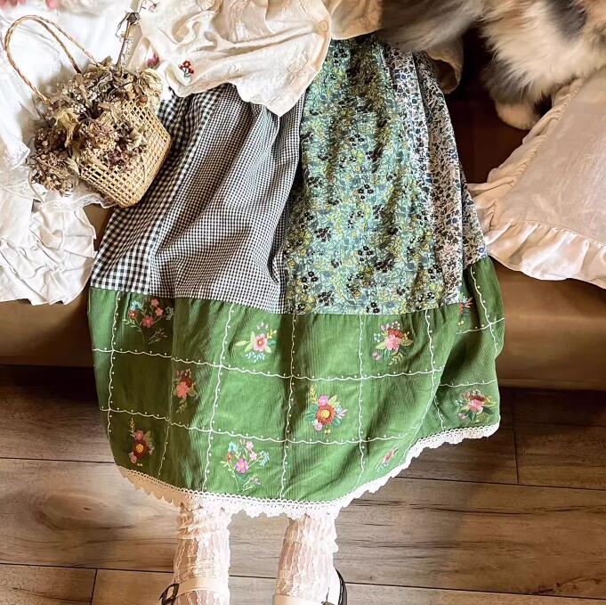 コーデュロイ スカート 森ガール 花柄