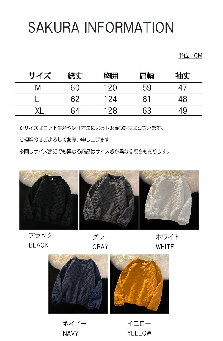 ブラック グレー ホワイト ネイビー イエロー M L XL LL プルオーバー 冬 冬服 シンプル