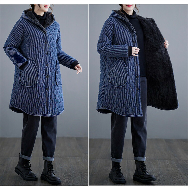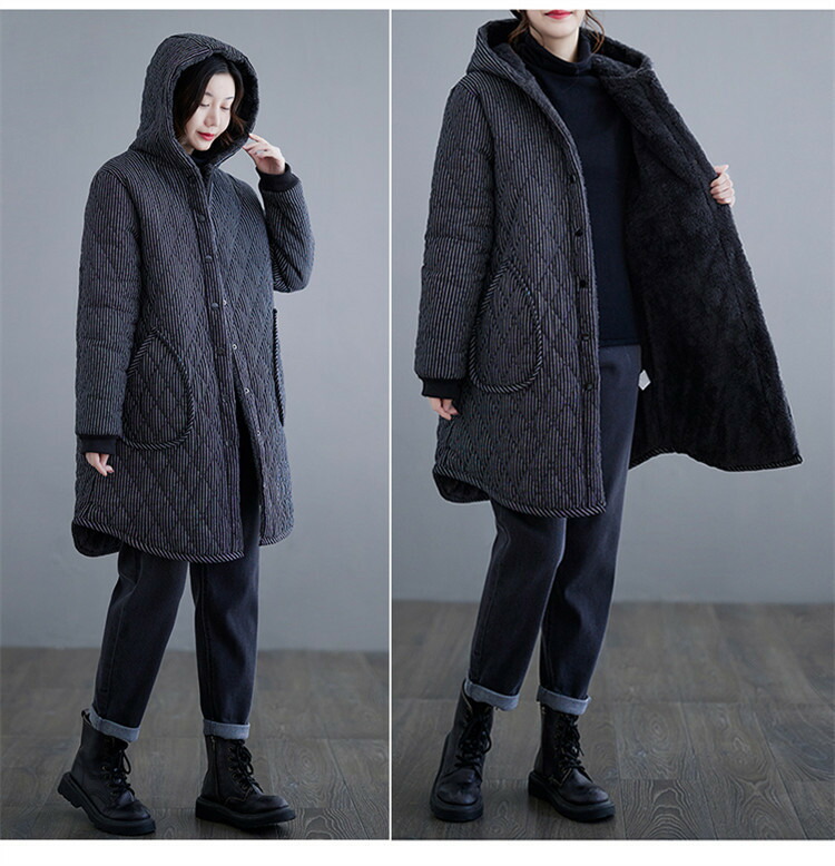 大きいサイズ L LL 3L ジャケット 裏ボア 冬 レディース コーデ コートフード付 アウター 中綿入り キルティング 長袖 あったか モッズコート ボアコート ロングコード 防寒 無地 ストライ