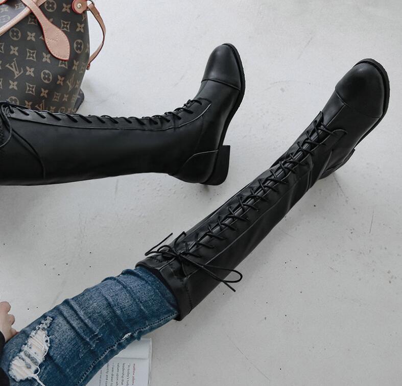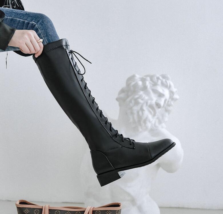ロングブーツ レースアップブーツ 美脚