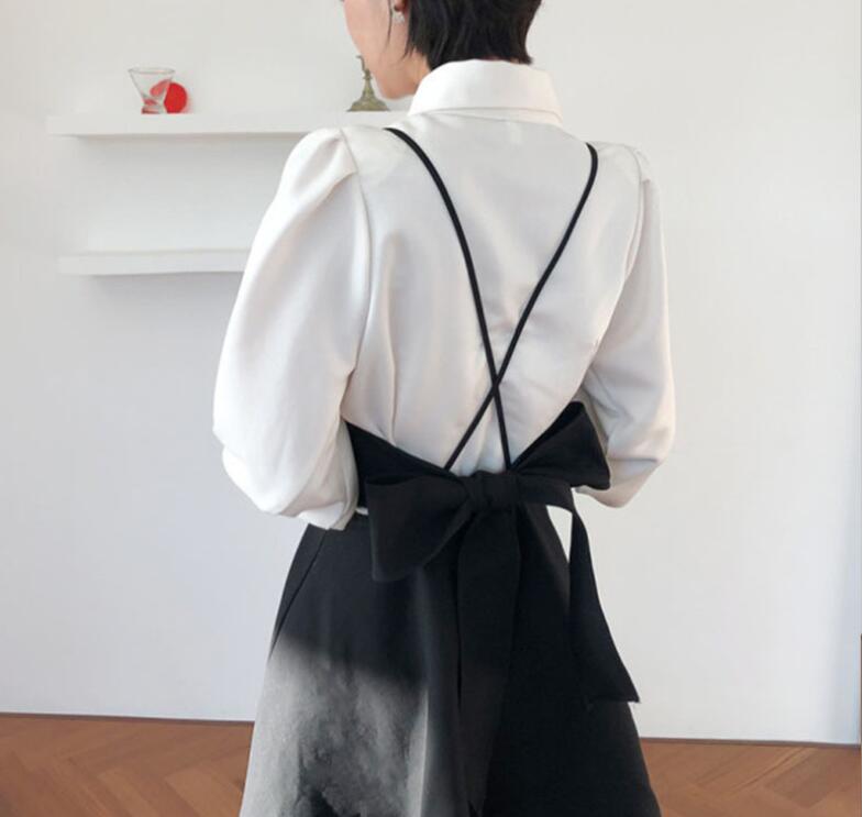 シアースリーブ ドッキングシャツ ボウタイシャツブラウス