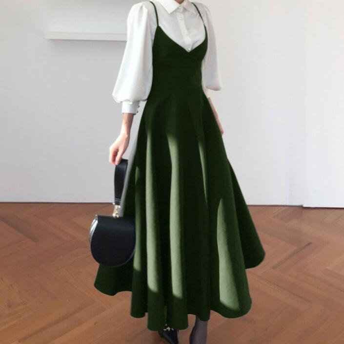 カラー: ブラックワンピース グリーンワンピース ホワイトシャツ