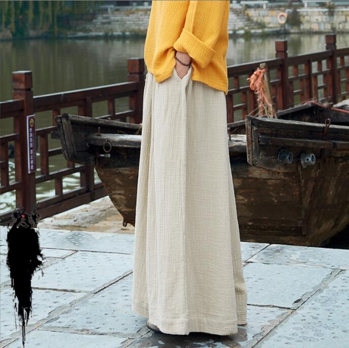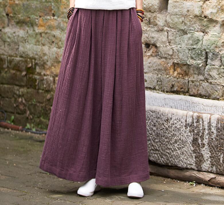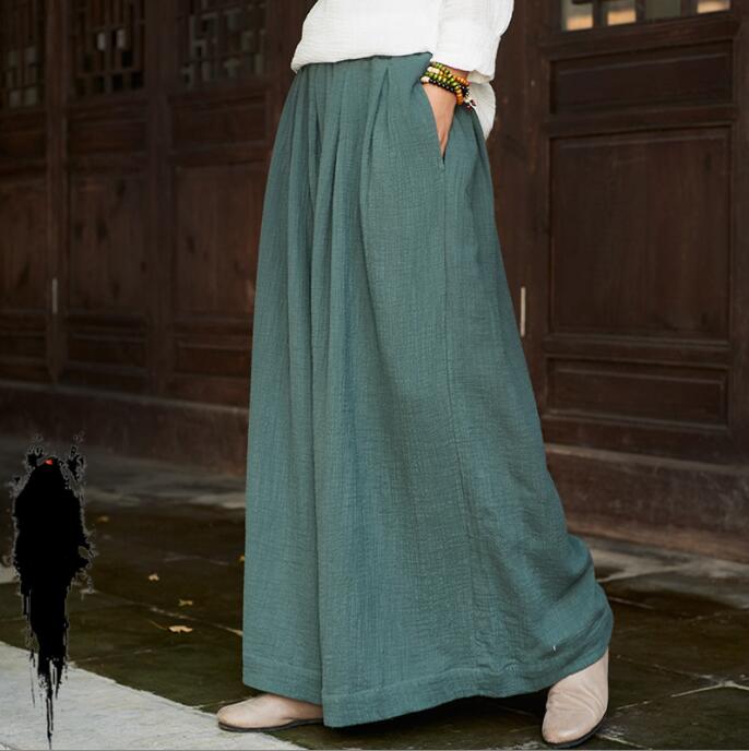 リネン ロングパンツ ワイドパンツ フ