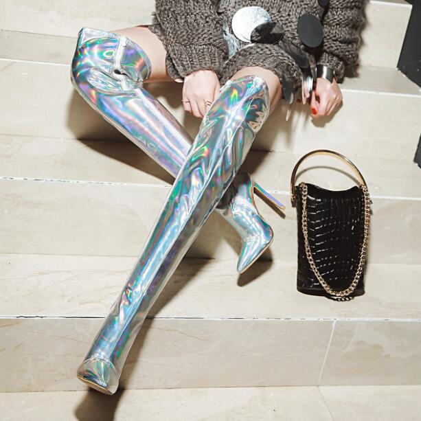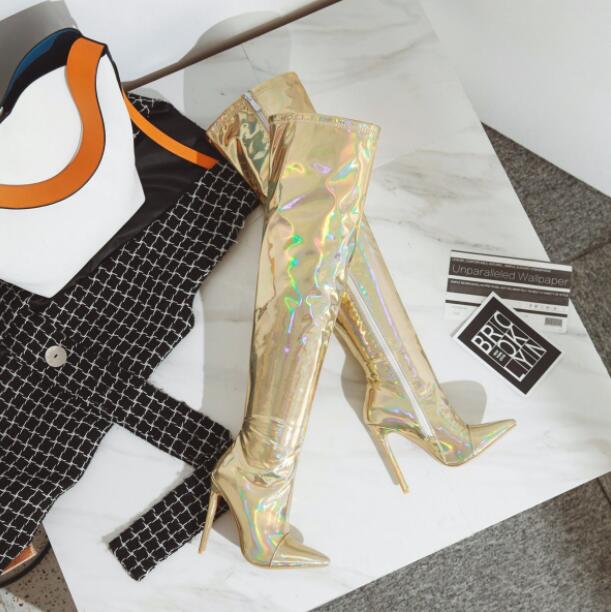 レディースブーツエナメルロングブーツニ