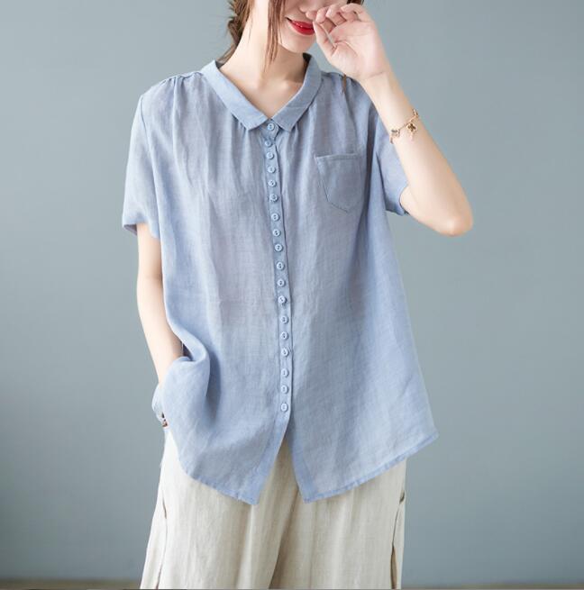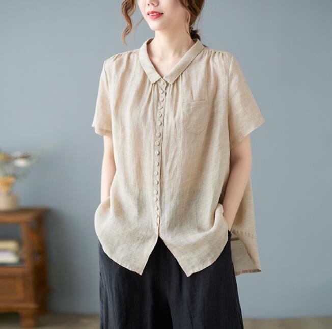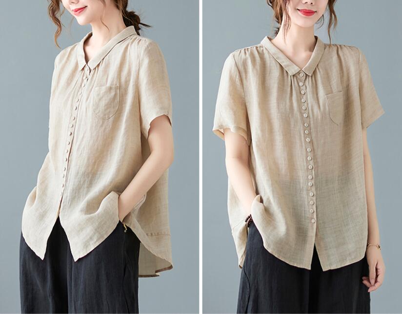 ブラウス レディース 夏 半袖 リネン