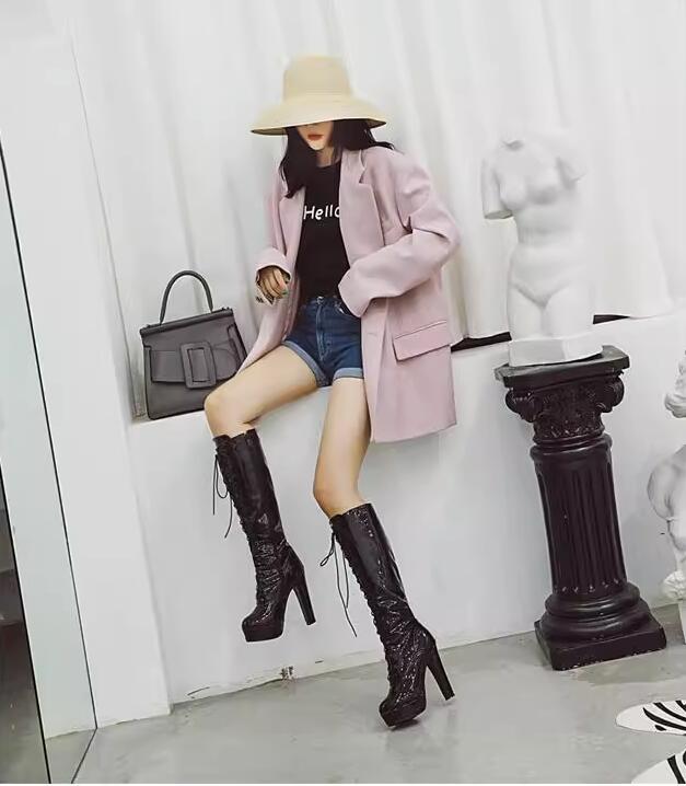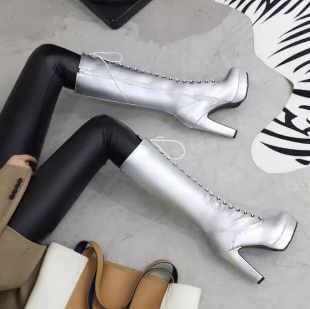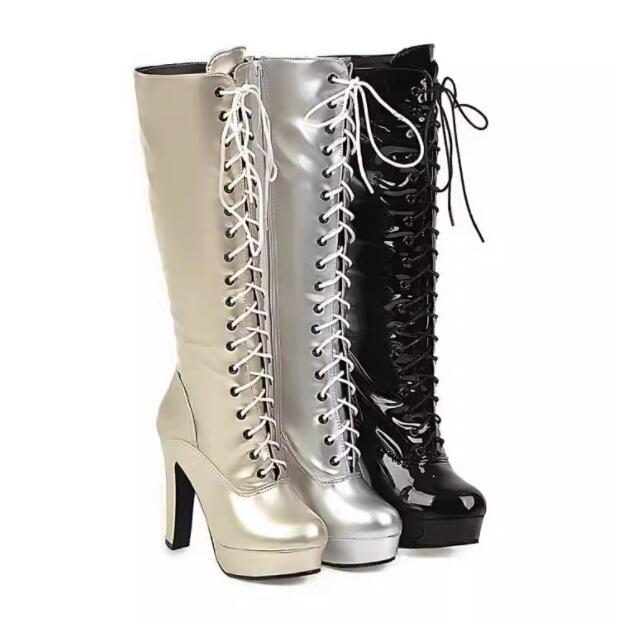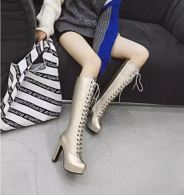 厚底ブーツ ロングブーツ レースアップ