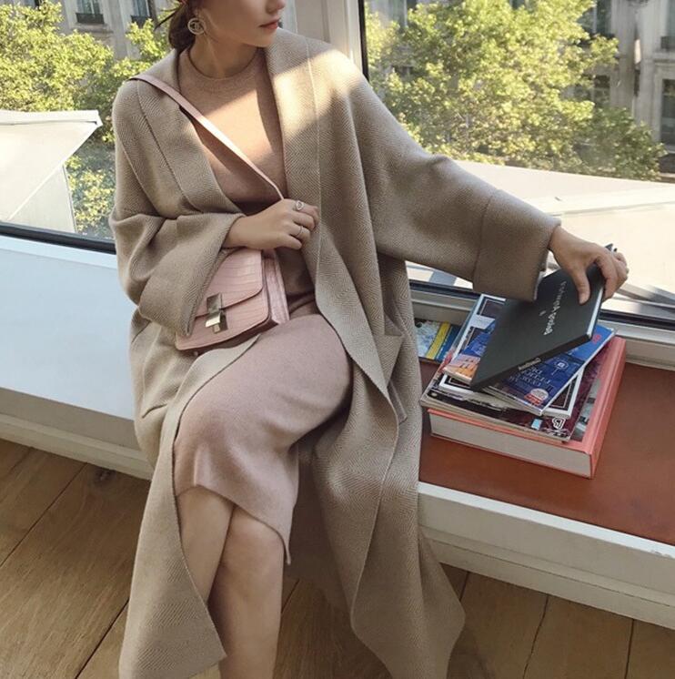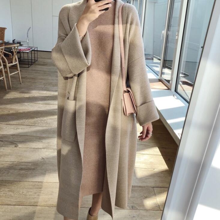 ニットカーディガン ロング ポケット付