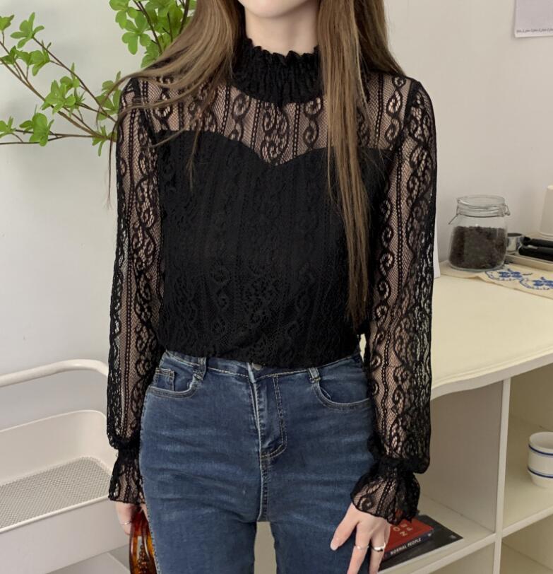 レース トップス レース ブラウス 長