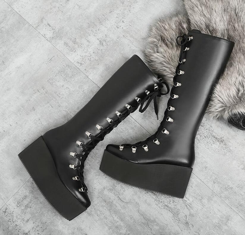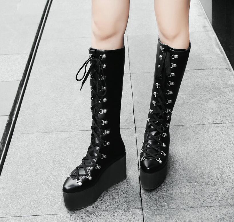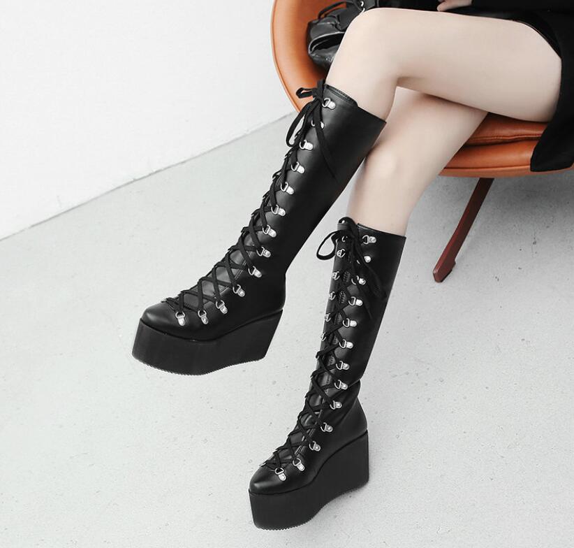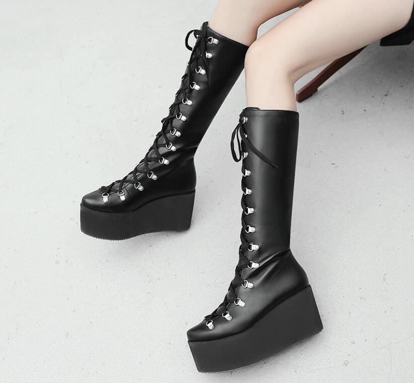 ロングブーツ レースアップブーツ 厚底