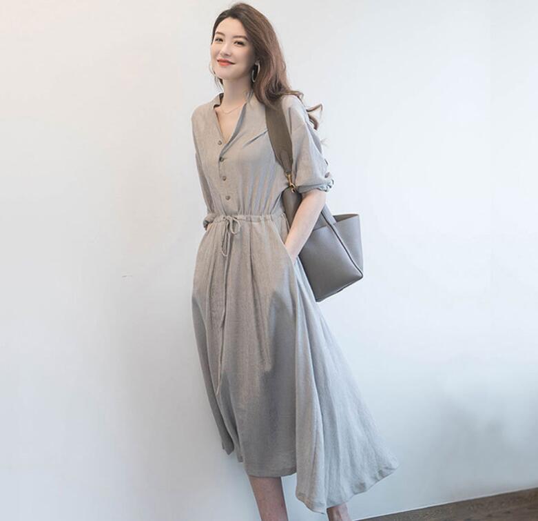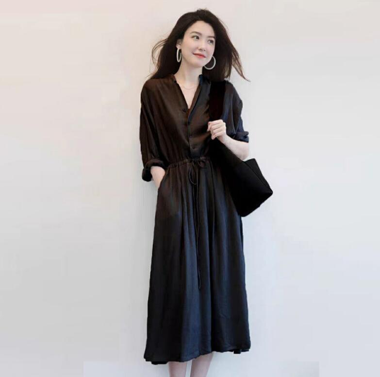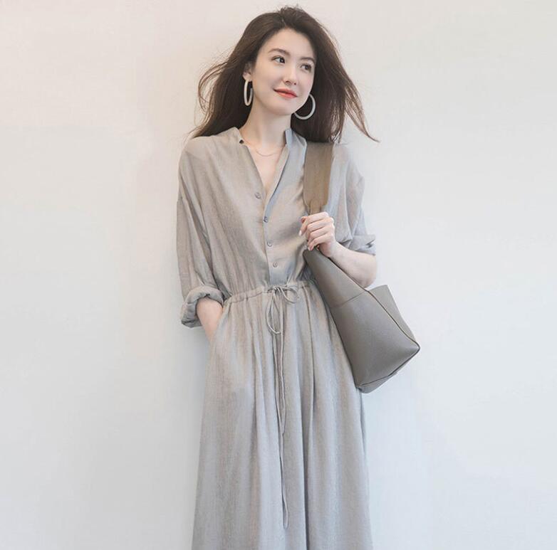 ロングワンピース シャツワンピース V