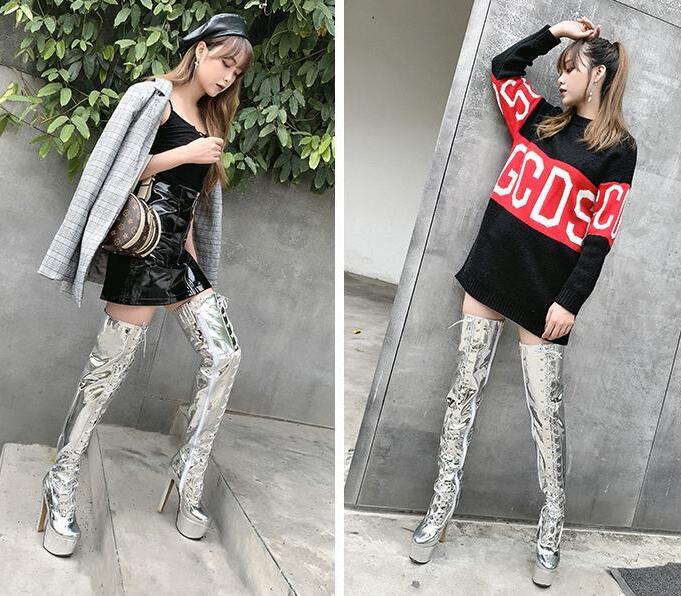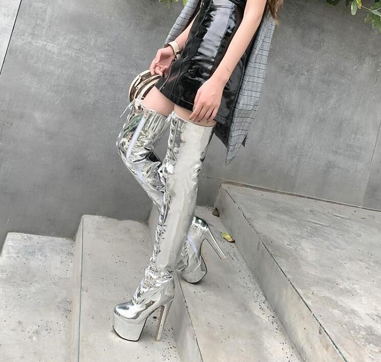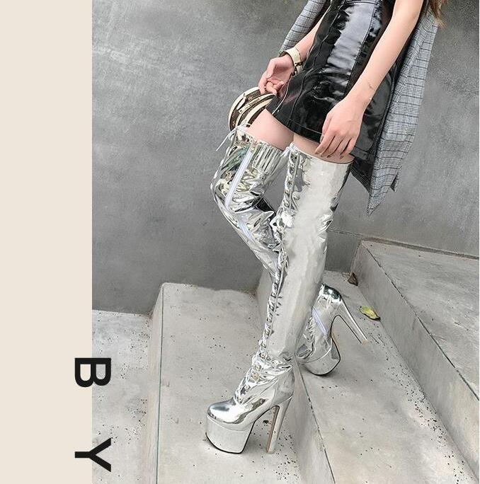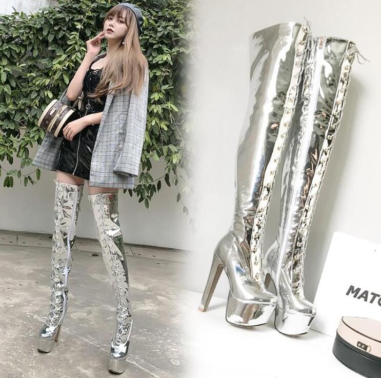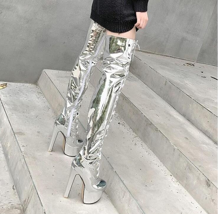 レディースブーツエナメルロングブーツニ