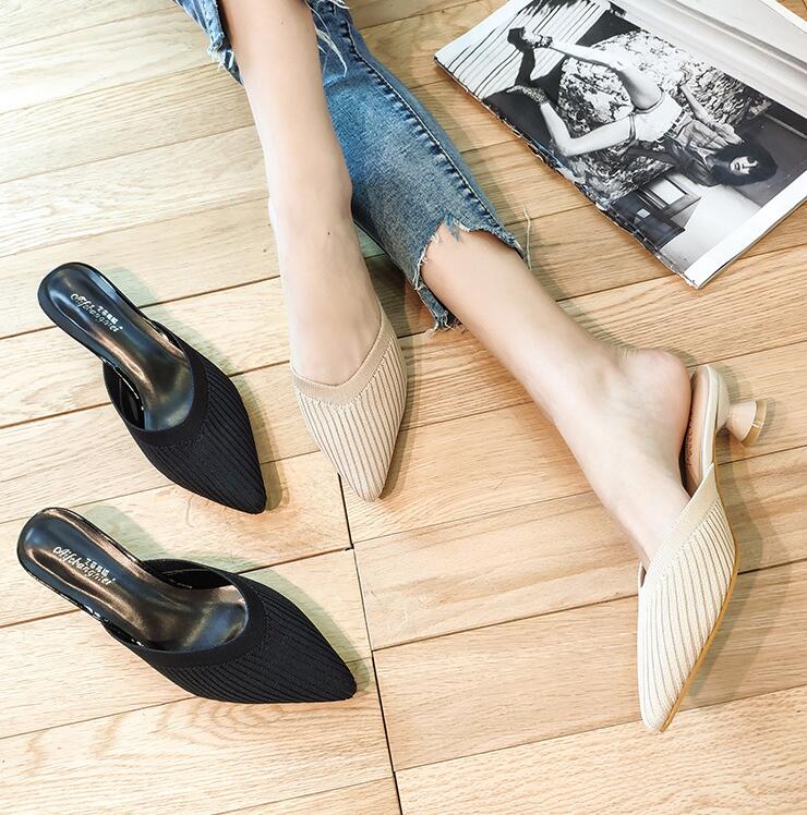 ポインテッドトゥ Vカット ミュール