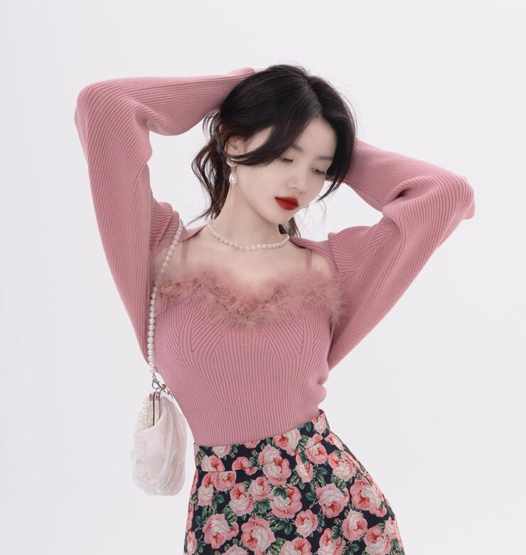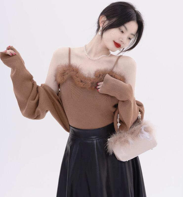 ニットセーターふわふわ フェイクファー