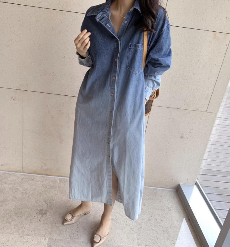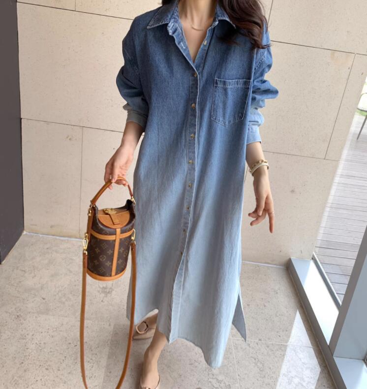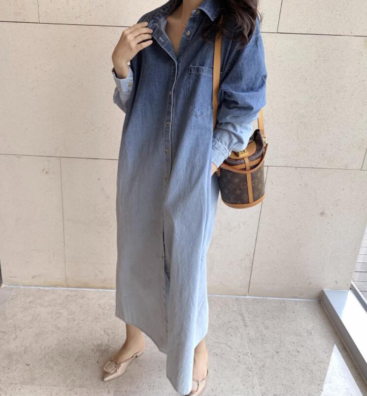デニムシャツワンピース 長袖 レディー