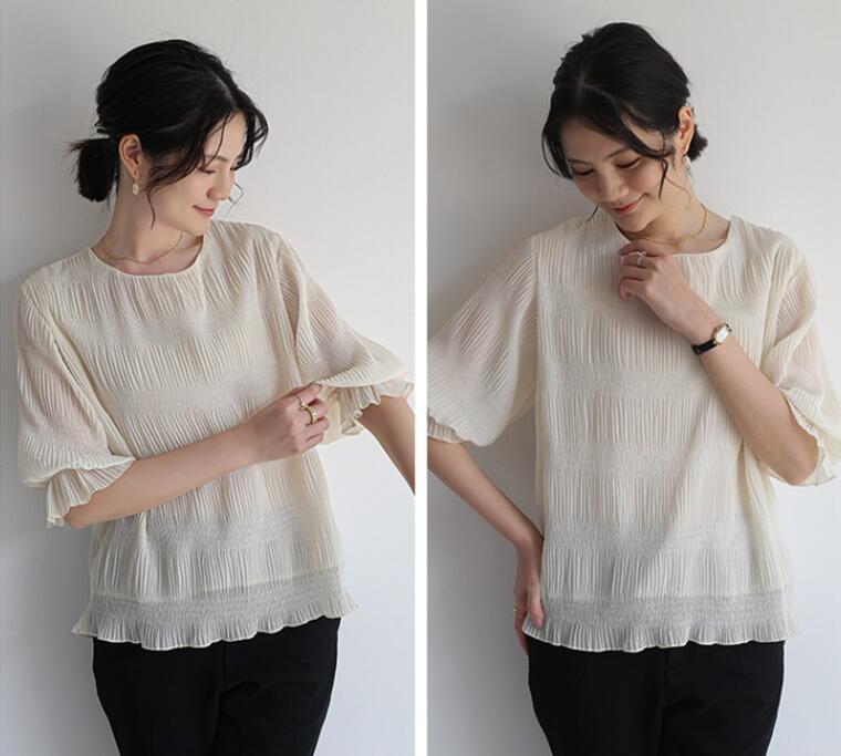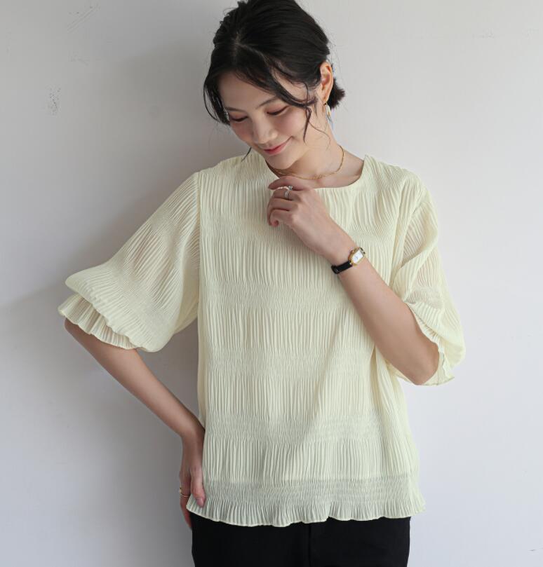 シアースリーブ ドッキングシャツ ボウタイシャツブラウス