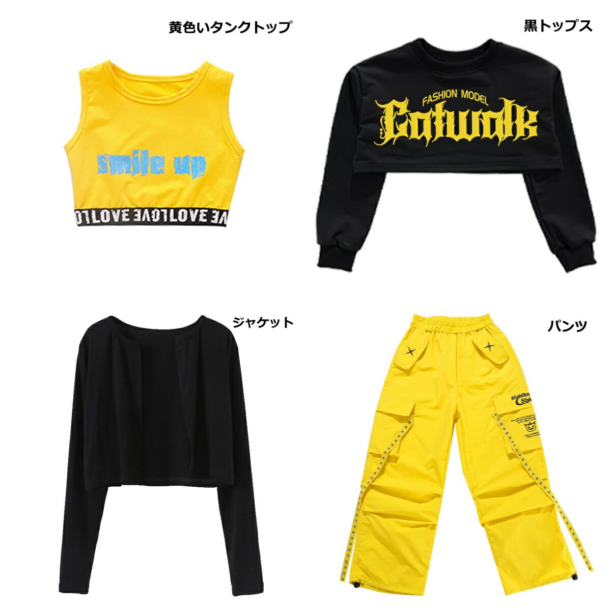 商品内容: 黄色タンクトップ 黒トップス ジャケット パンツ 3点セット 4点セット