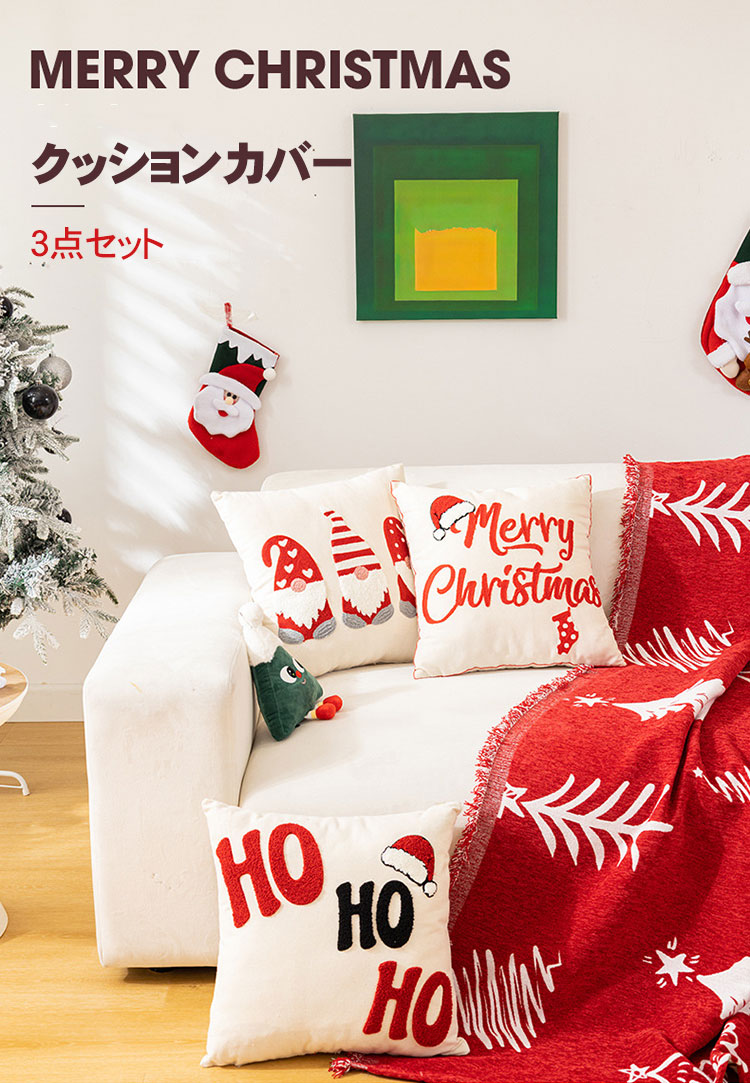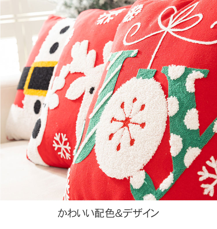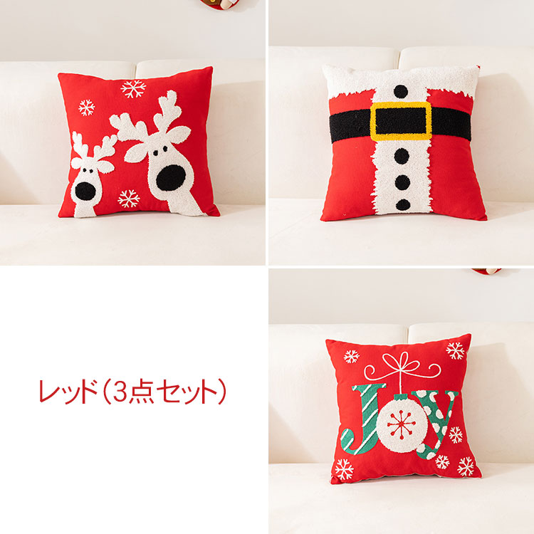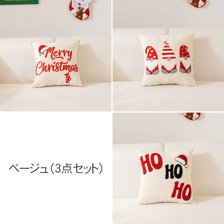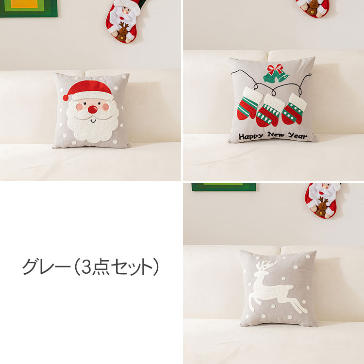 クリスマス枕カバー 刺繍入り クッショ ベージュ(3枚セット) レッド(3枚セット) グレー(3枚セット)