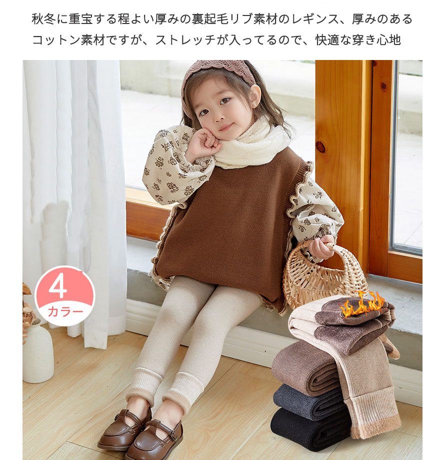 キッズ 裏起毛 リブレギンス 子供用