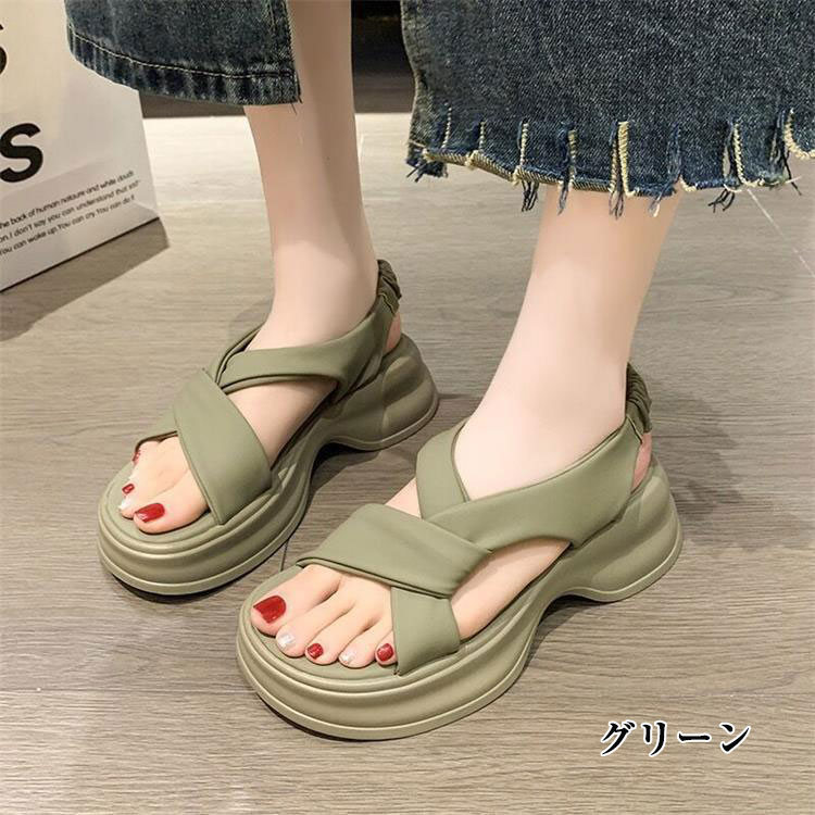 厚底サンダル 疲れない レディース 歩 靴 通販 ブラック ベージュ グリーン 35#(内寸22.5cm) 36#(内寸23cm) 37#(内寸23.5cm) 38#(内寸24cm) 39#(内寸24.5cm) 40#(内寸25cm)