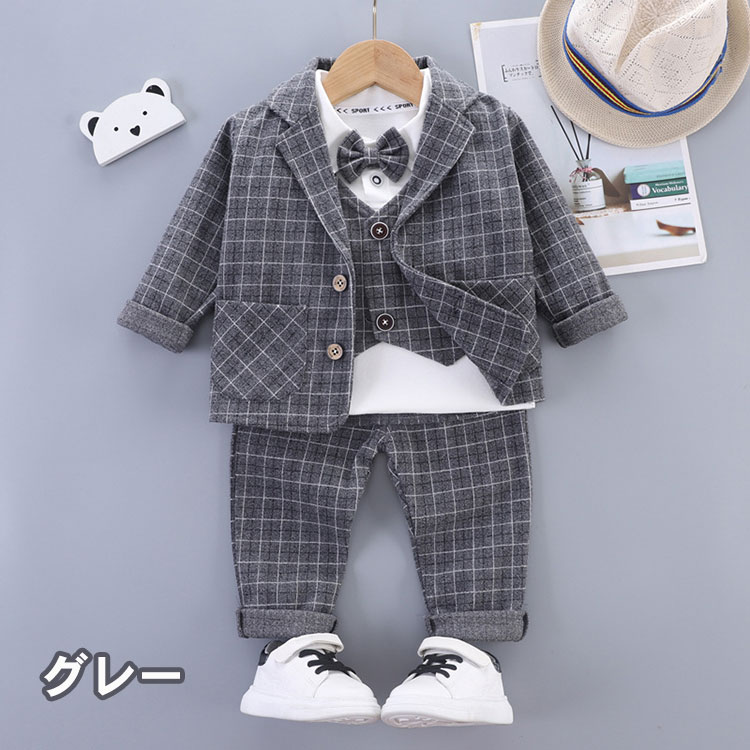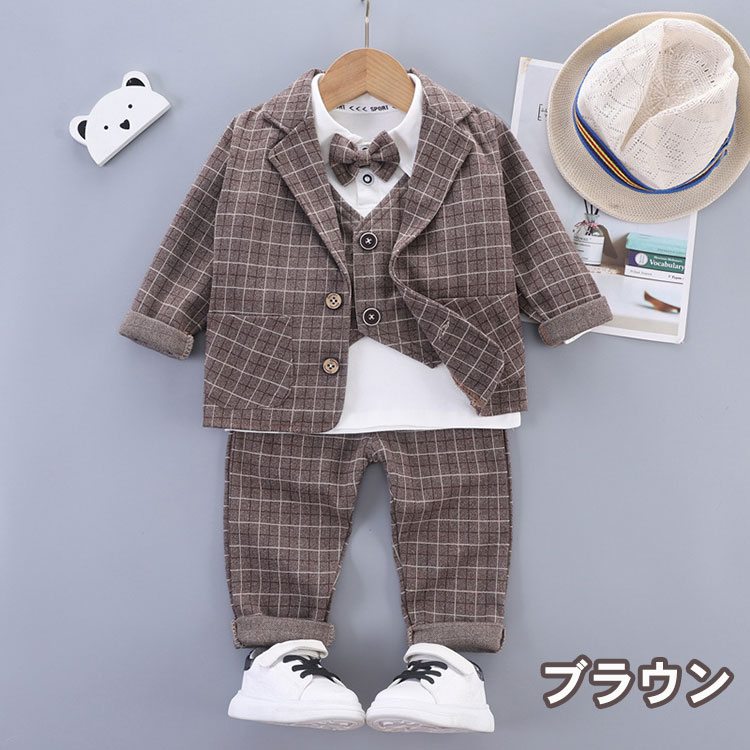 ベビースーツ 男の子 3点セット 男の キッズ ベビー マタニティ 豊富 グレー ブラウン 80cm 90cm 100cm 110cm 120cm