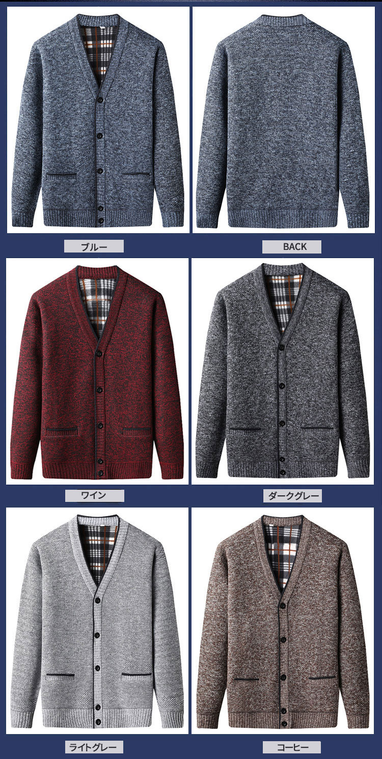 カーディガン メンズ裏起毛 秋冬 ニッ メンズファッション 新作 ブルー ワイン ダークグレー ライトグレー コーヒー M L XL XXL XXXL