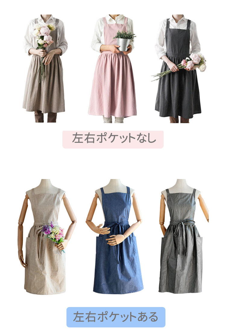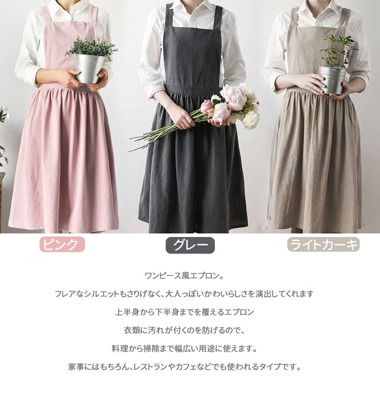 エプロンワンピース おしゃれ 前掛け キッチン用品 食器 調理器具 49%Off ピンク グレー ライトカーキ ポケット付き ポケットなし