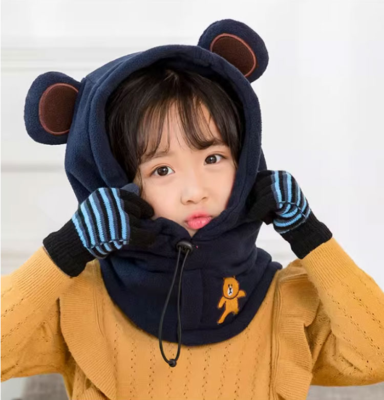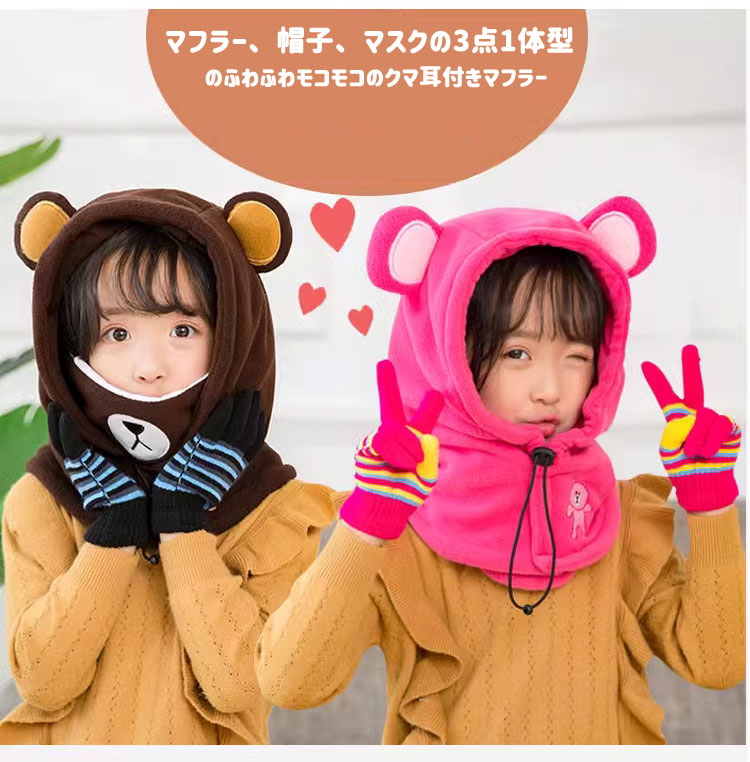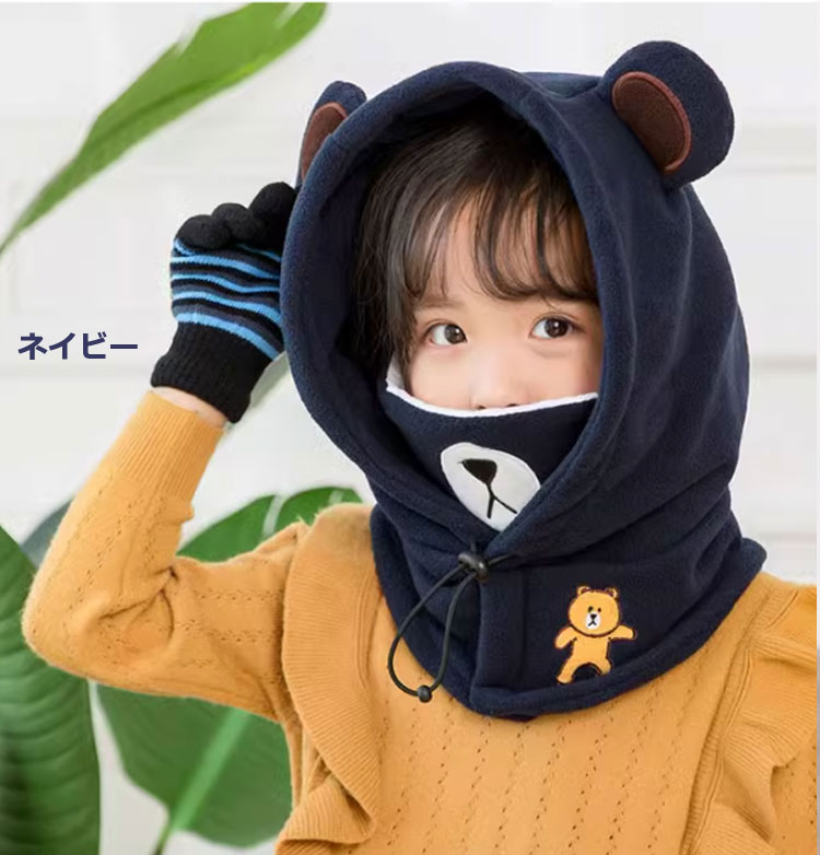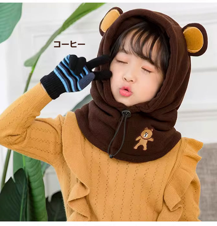 子供 冬用 防寒 フード付きネックウォ バッグ 小物 ブランド雑貨 続々登場 ネイビー コーヒー ローズ ピンク