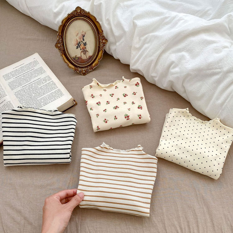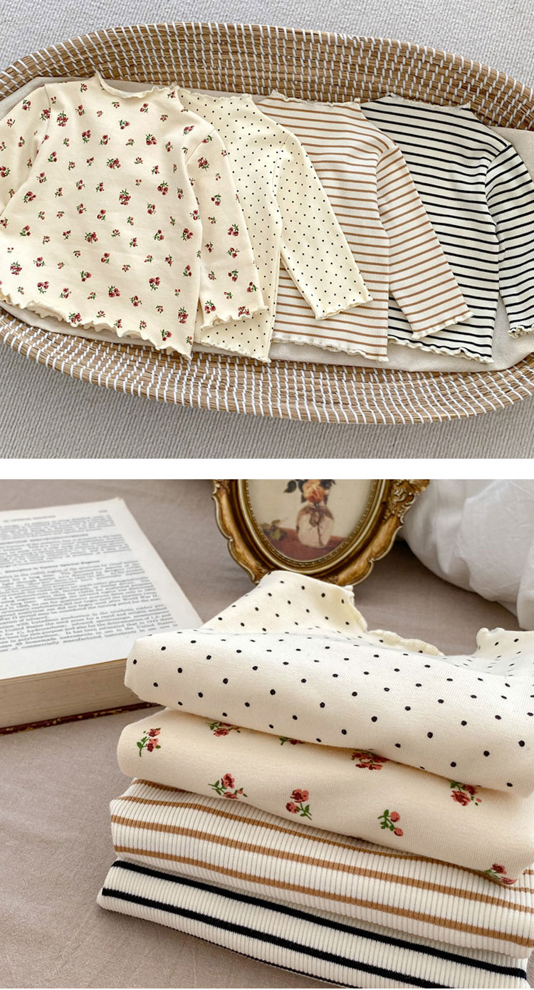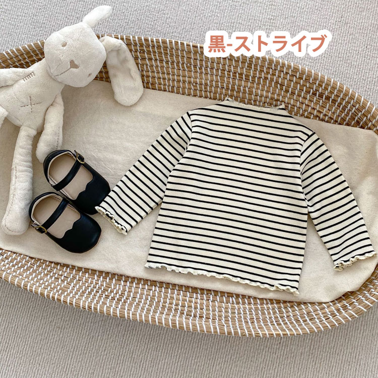キッズ 長袖シャツ 子供肌着 長袖 イ ベビー ベビー服 ファッション トップス Tシャツ 割引 小花柄 ドット柄 黒-ストライブ柄 ブラウン-ストライブ柄 66cm 73cm 80cm 90cm 100cm