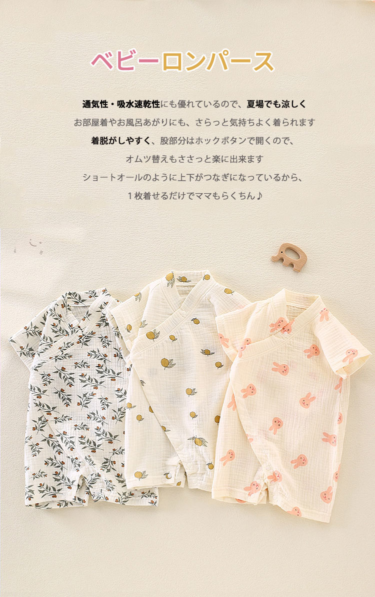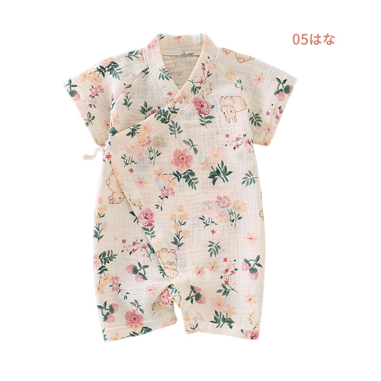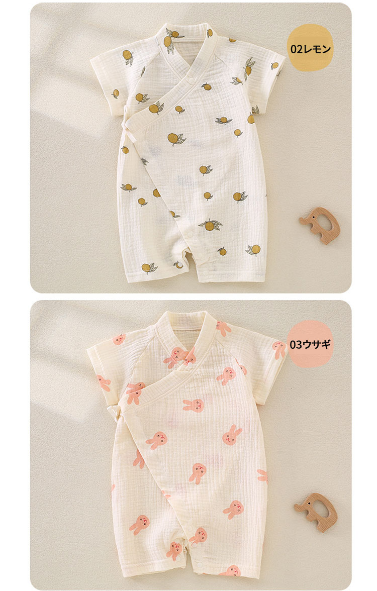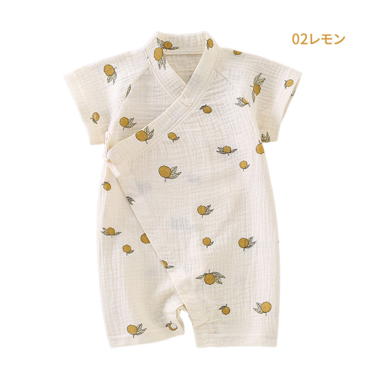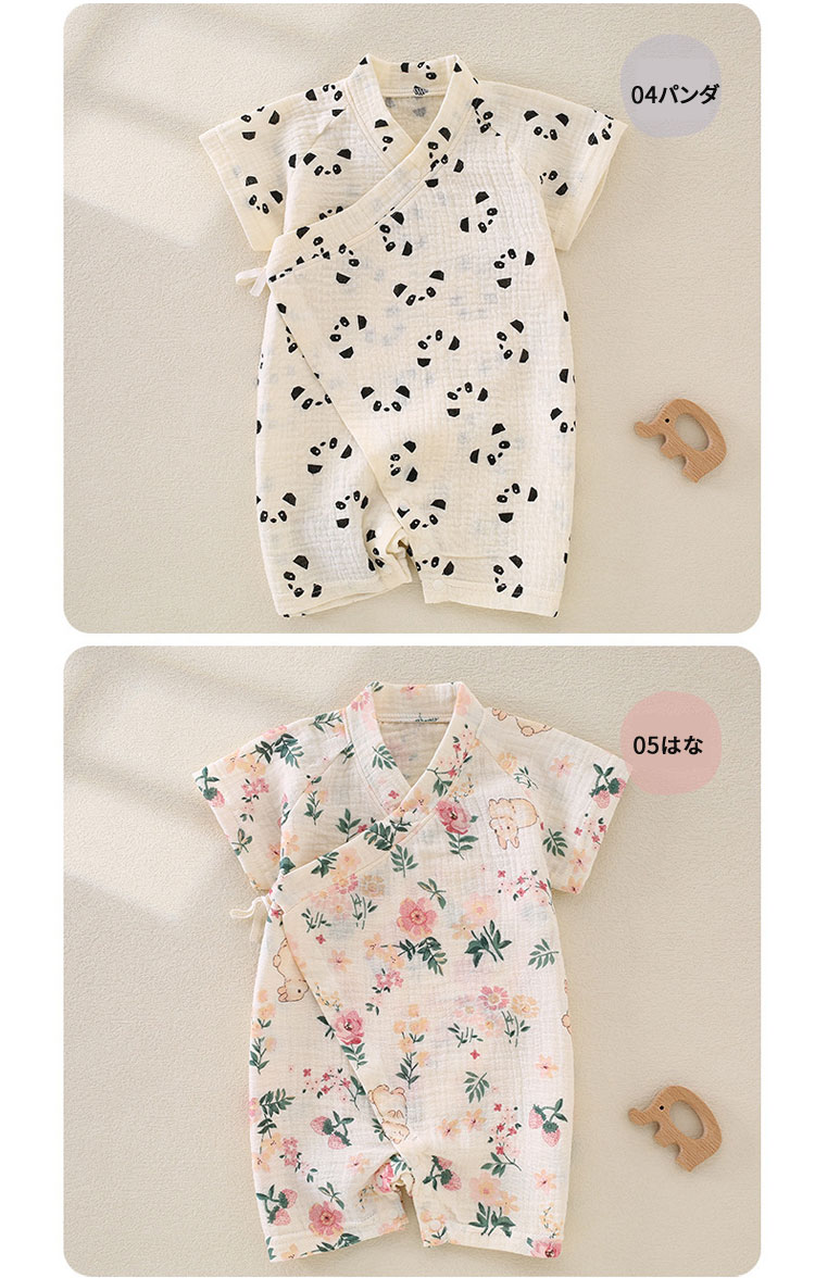 ベビー甚平ロンパース 女の子 男の子 01木の葉 02レモン 03ウサギ 04パンダ 05はな 06クマ 07笑顔 59cm 66cm 73cm 80cm 90cm