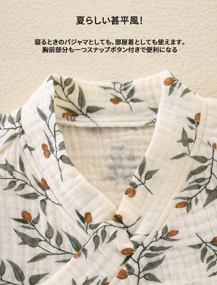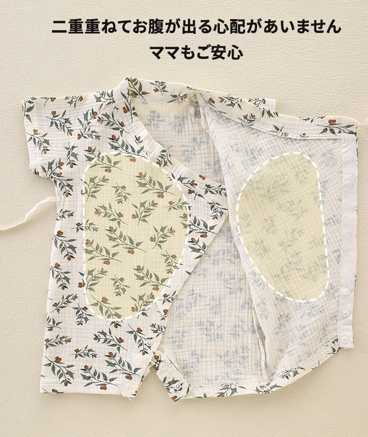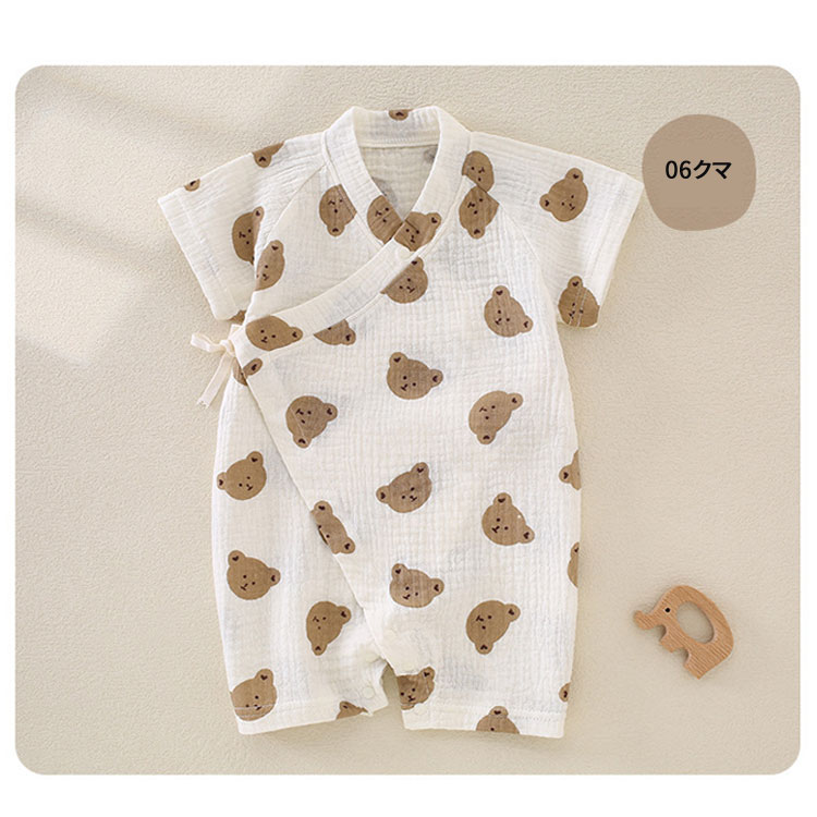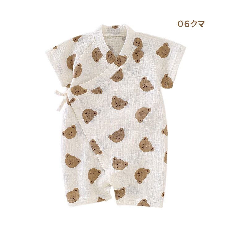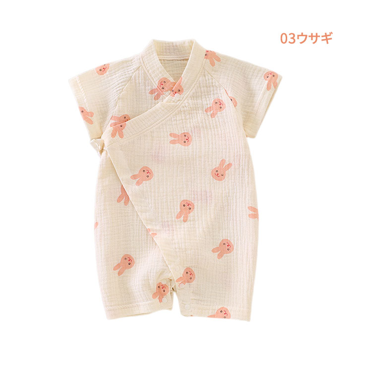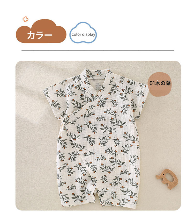 ベビー甚平ロンパース 女の子 男の子 01木の葉 02レモン 03ウサギ 04パンダ 05はな 06クマ 07笑顔 59cm 66cm 73cm 80cm 90cm