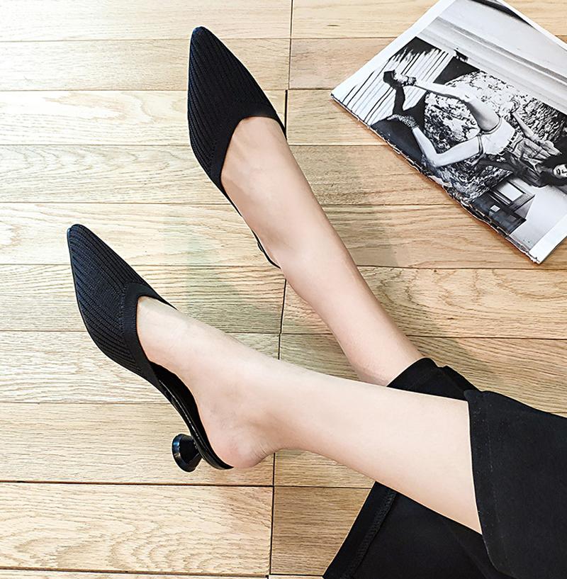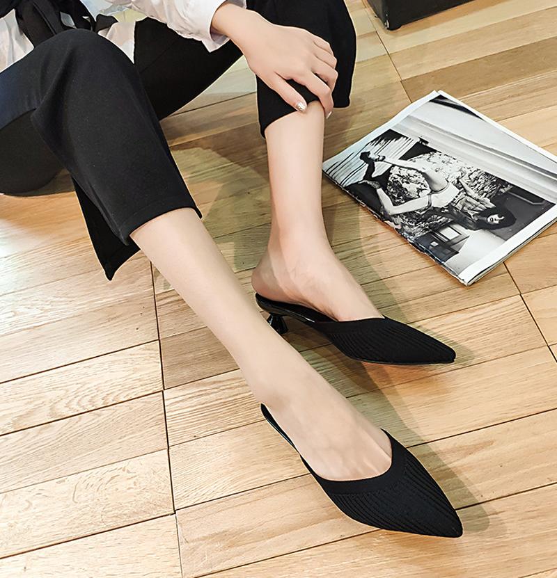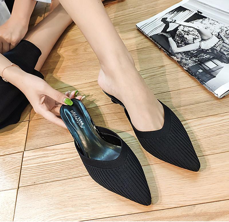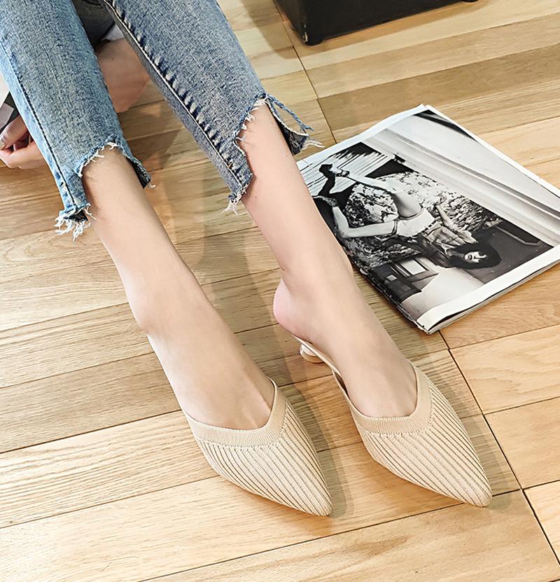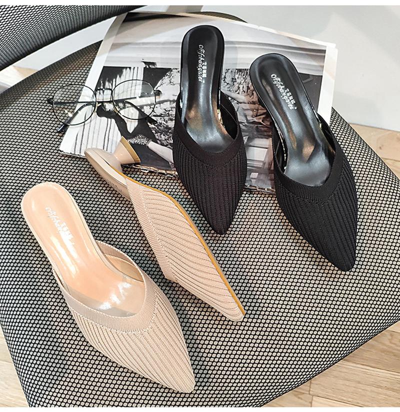 ポインテッドトゥミュール ヒール レディース スリッポンサンダル ニット 夏 22~26cm シンプル ポインテッドトゥ スクエアトゥ 美脚 フラットタイプでさらっと履ける シューズ ミュール スリッ