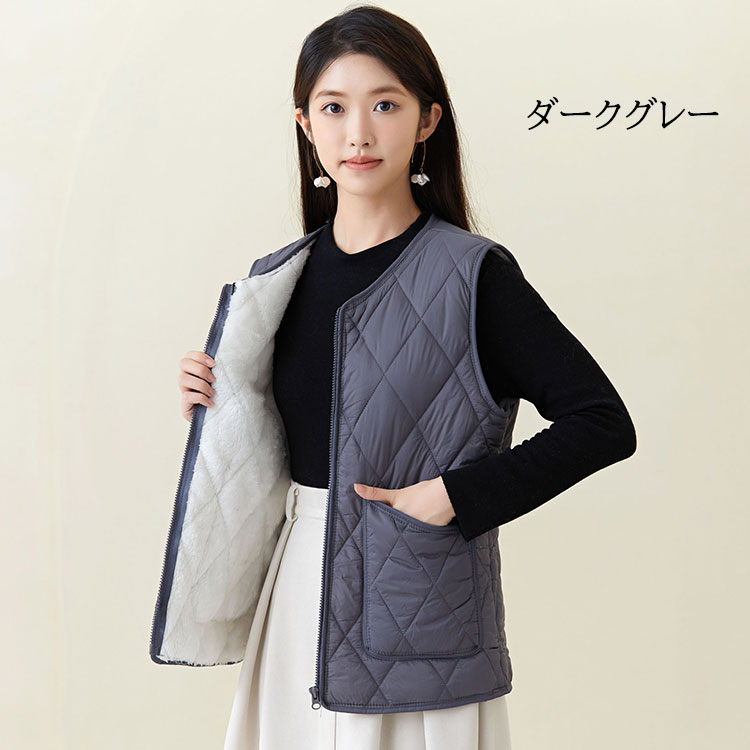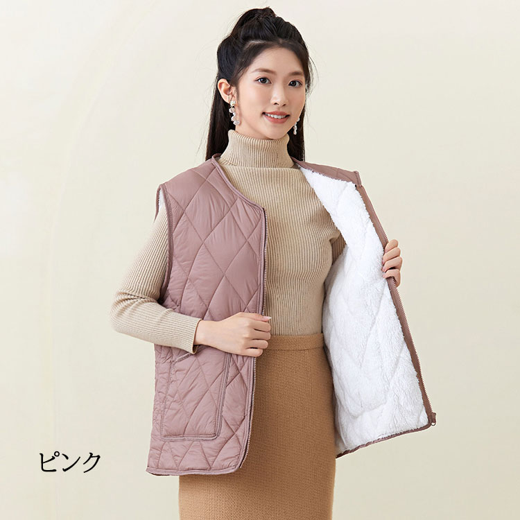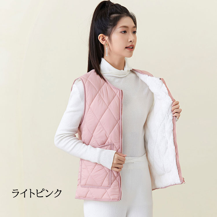 裏ボア ベスト レディース 中綿 イン レディースファッション お得なセール ブラック カーキ ライトピンク ピンク ダークグレー M L XL 2XL 3XL