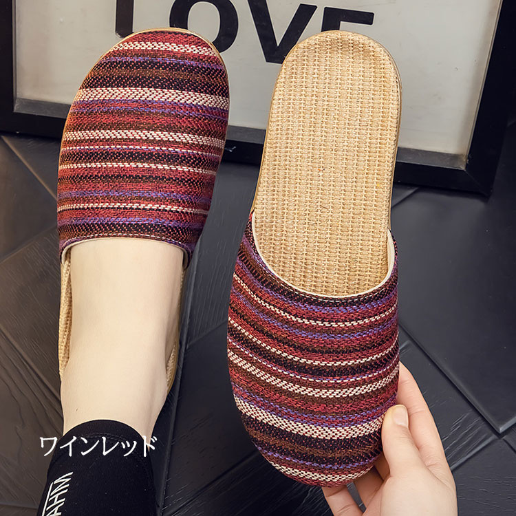 ルームシューズ 亜麻 ルームスリッパ 日用品雑貨 文房具 手芸 割引 レッド ワインレッド グリーン パープル ベージュ コーヒー色 ブルー 35-36#(内寸22.5-23cm) 37-38#(内寸23.5-24cm) 39-40#(内寸24.5-25cm) 40-41# (内寸25-25.5cm) 42-43#(内寸26-26.5cm) 44-45#(内寸27-27.5cm)
