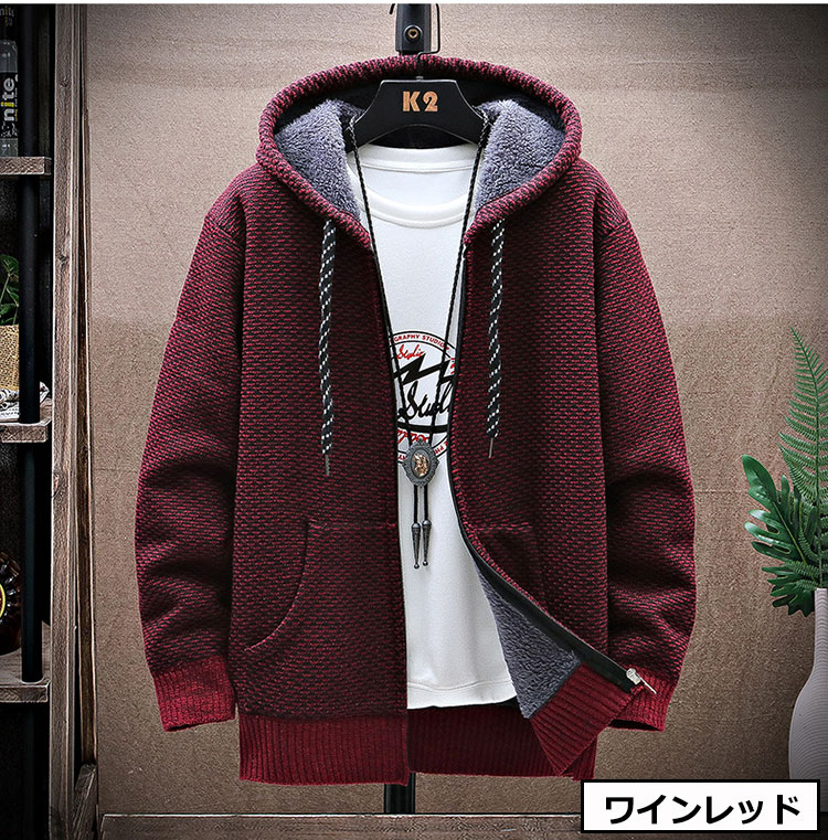 メンズ カーディガン 裏起毛 ニットパ トップス カーディガン 続々入荷中 ワインレッド グリーン ブルー ライトグレー ブラウン 【M】 【L】 【XL】 【2XL】 【3XL】