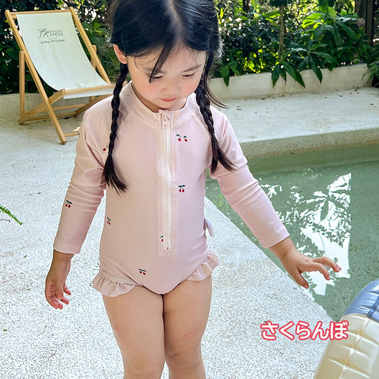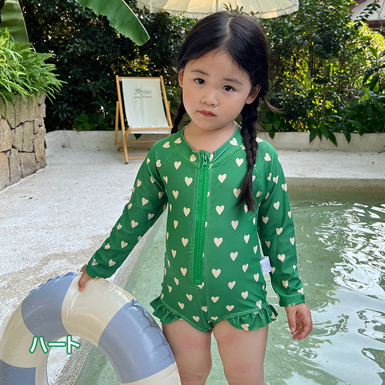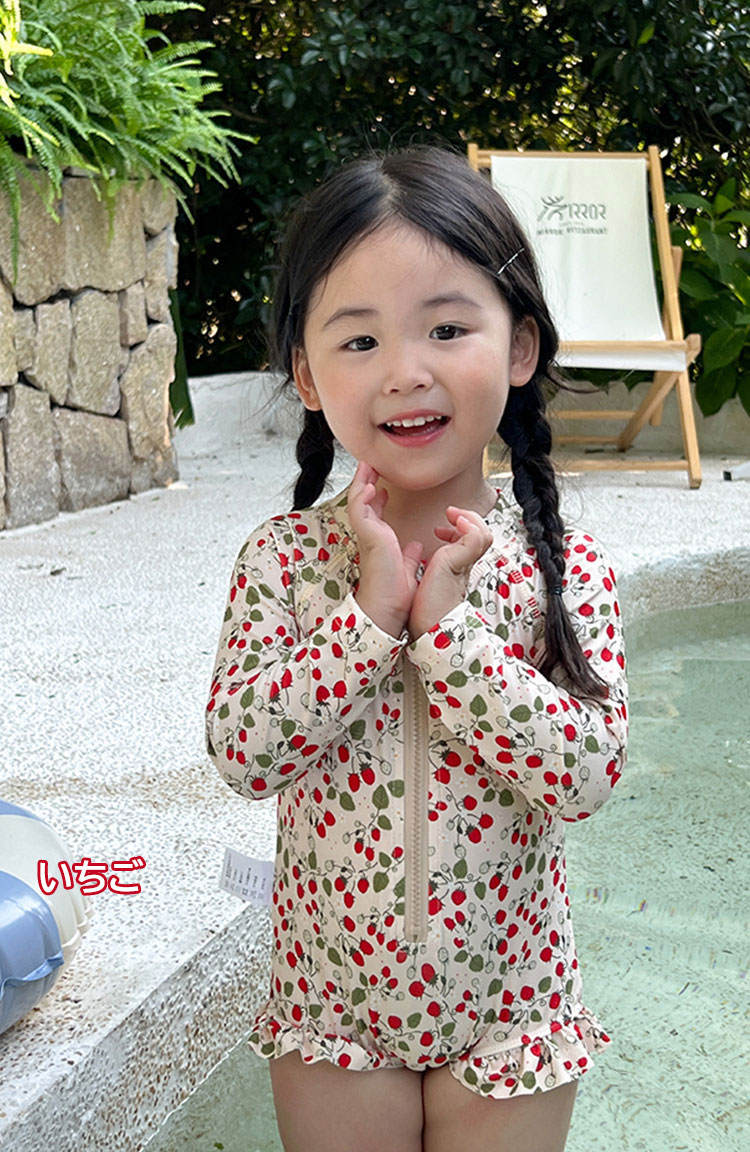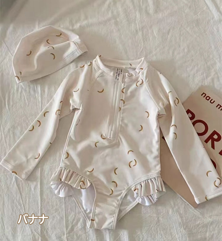 オールインワン水着 長袖 女の子 ベビ キッズ ベビー マタニティ 36%Off いちご ハート さくらんぼ バナナ はな 90cm 100cm 110cm 120cm 130cm 140cm