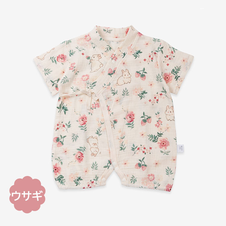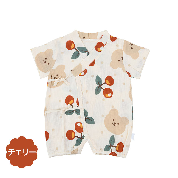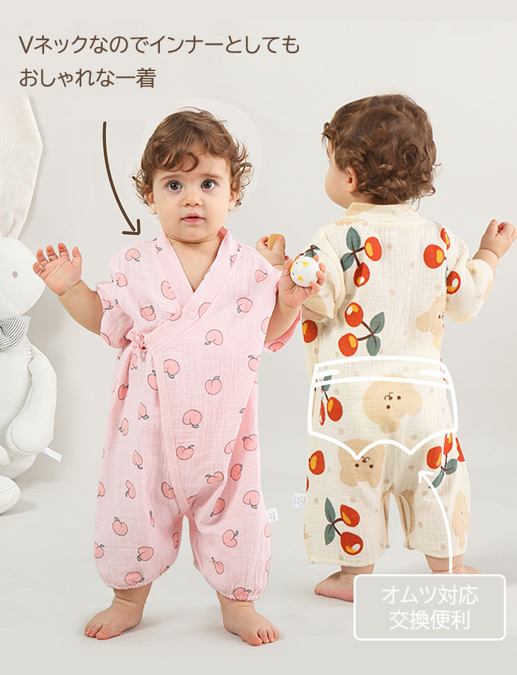 ベビー甚平 ロンパース 男の子 女の子 ウサギ チェリー もも トラ くま 59cm 66cm 73cm 80cm 90cm