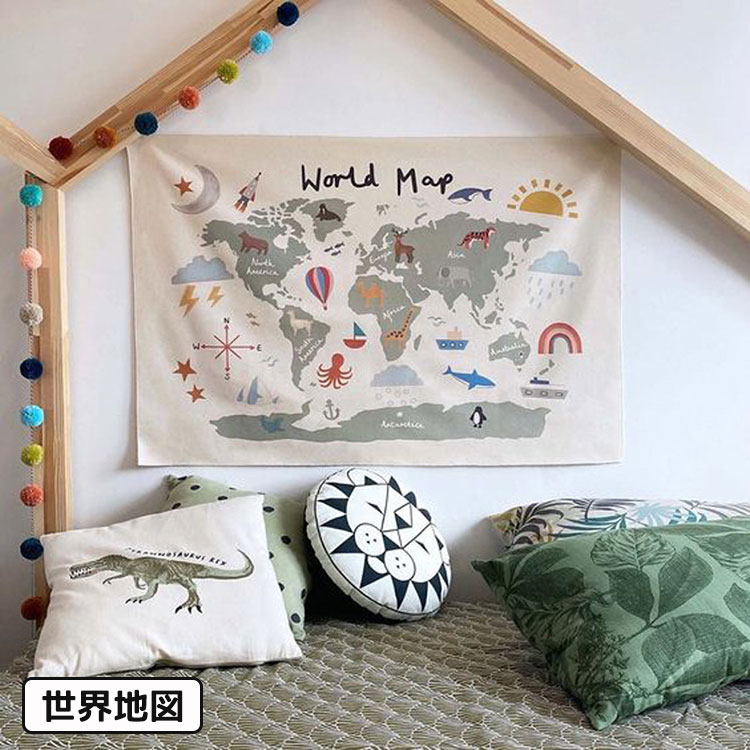 可愛い タペストリー北欧風 子供部屋用 日用品雑貨 文房具 手芸 通販 世界地図 動物 宇宙 虹 果物