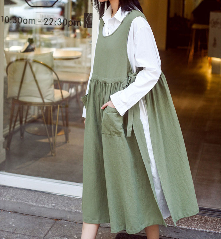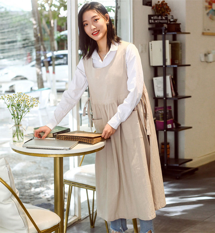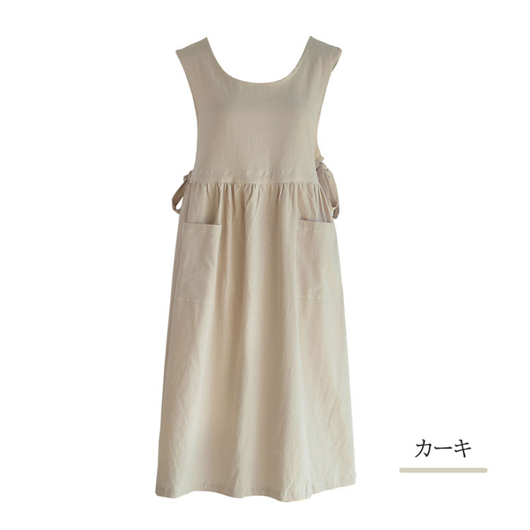 北欧風 エプロン ワンピース おしゃれ 配膳用品 キッチンファブリック エプロン 三角巾 エプロン 続々登場 カーキ ネイビー グリーン